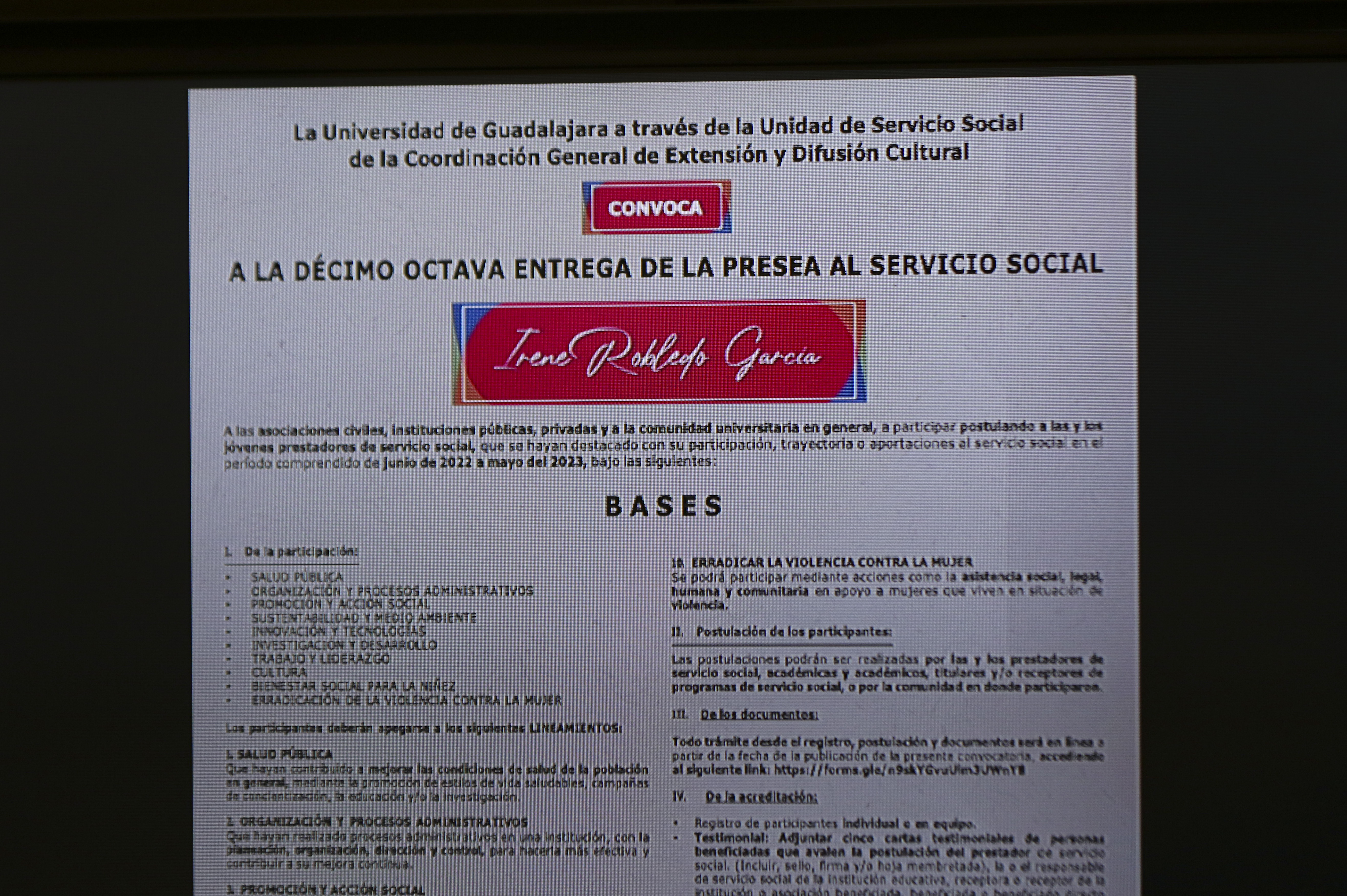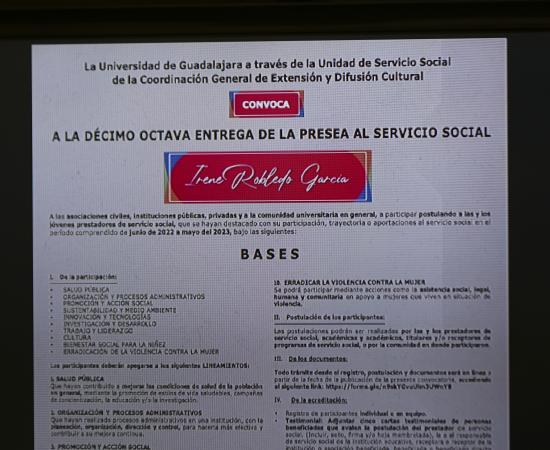 3. Abierta la convocatoria para la Presea al Servicio Social “Irene Robledo García”