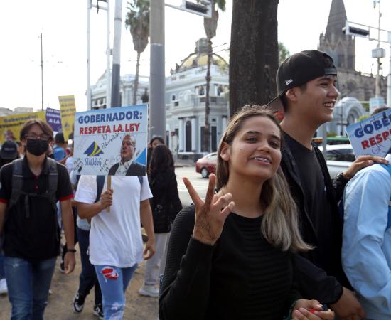 Comunidad de la Escuela Politécnica expresa sus demandas al gobernador afuera de Casa Jalisco