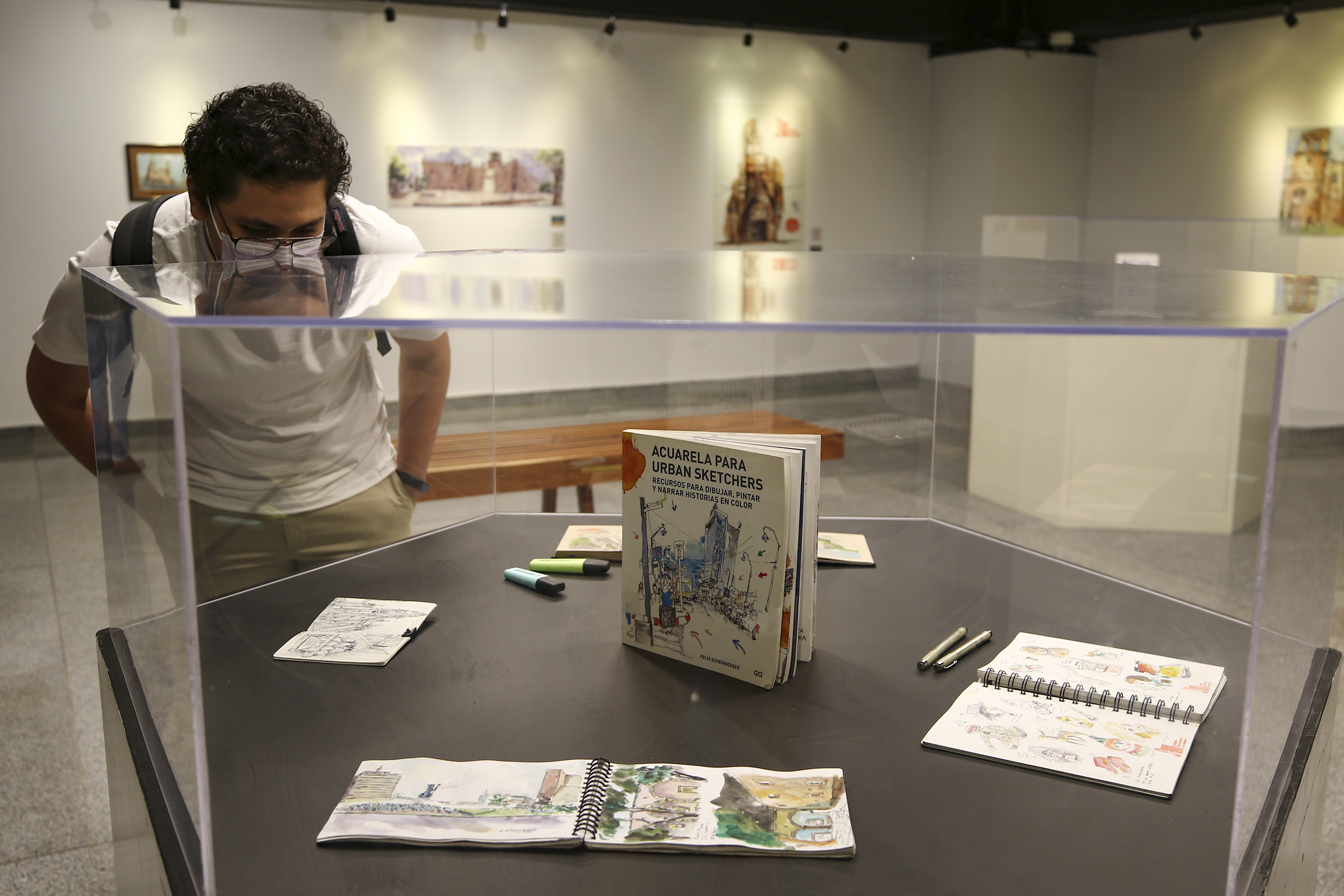Exponen artistas de Urban Sketchers dibujos sobre la ciudad