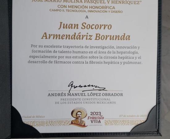3. Recibe universitario Premio Nacional de Ciencias, “José Mario Molina Pasquel y Henríquez”