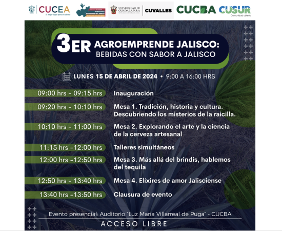Anuncian 3er AgroEmprende sobre bebidas con sabor a Jalisco, en CUCBA