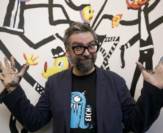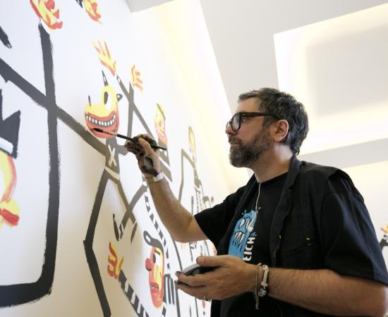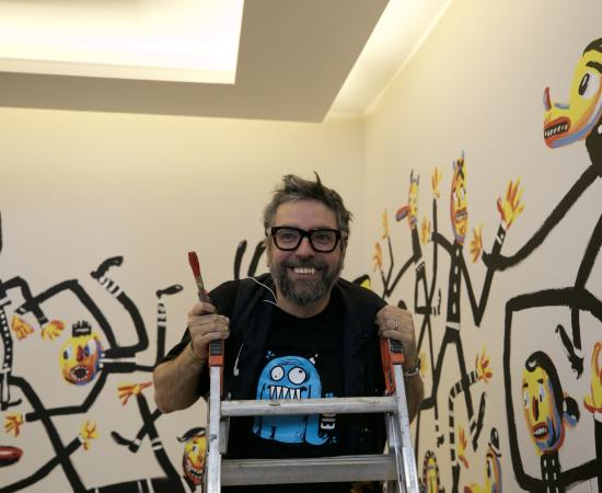 Caricaturista “Liniers” pinta mural en Conjunto Santander de Artes Escénicas