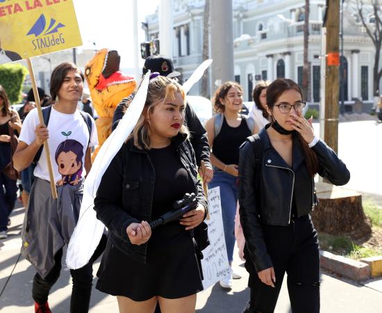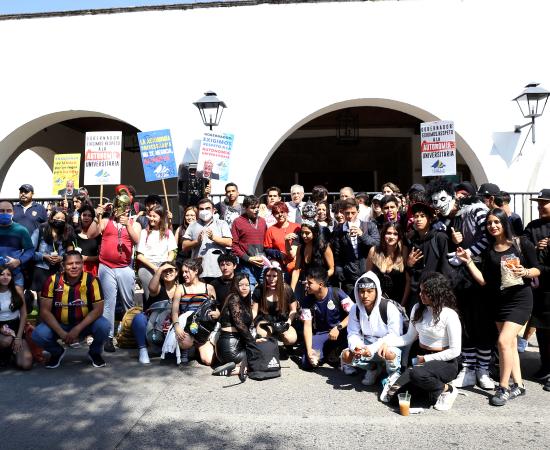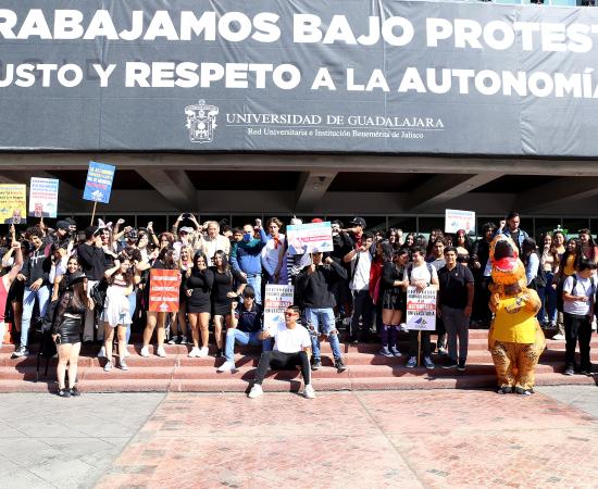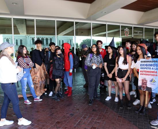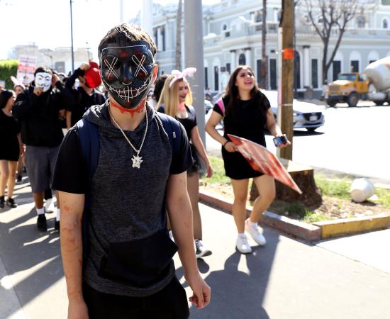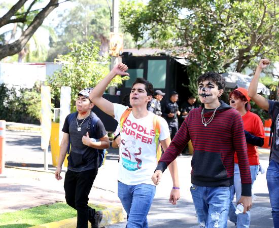 Preparatoria de Jalisco participa con disfraces y batucada en caminata por la autonomía universitaria