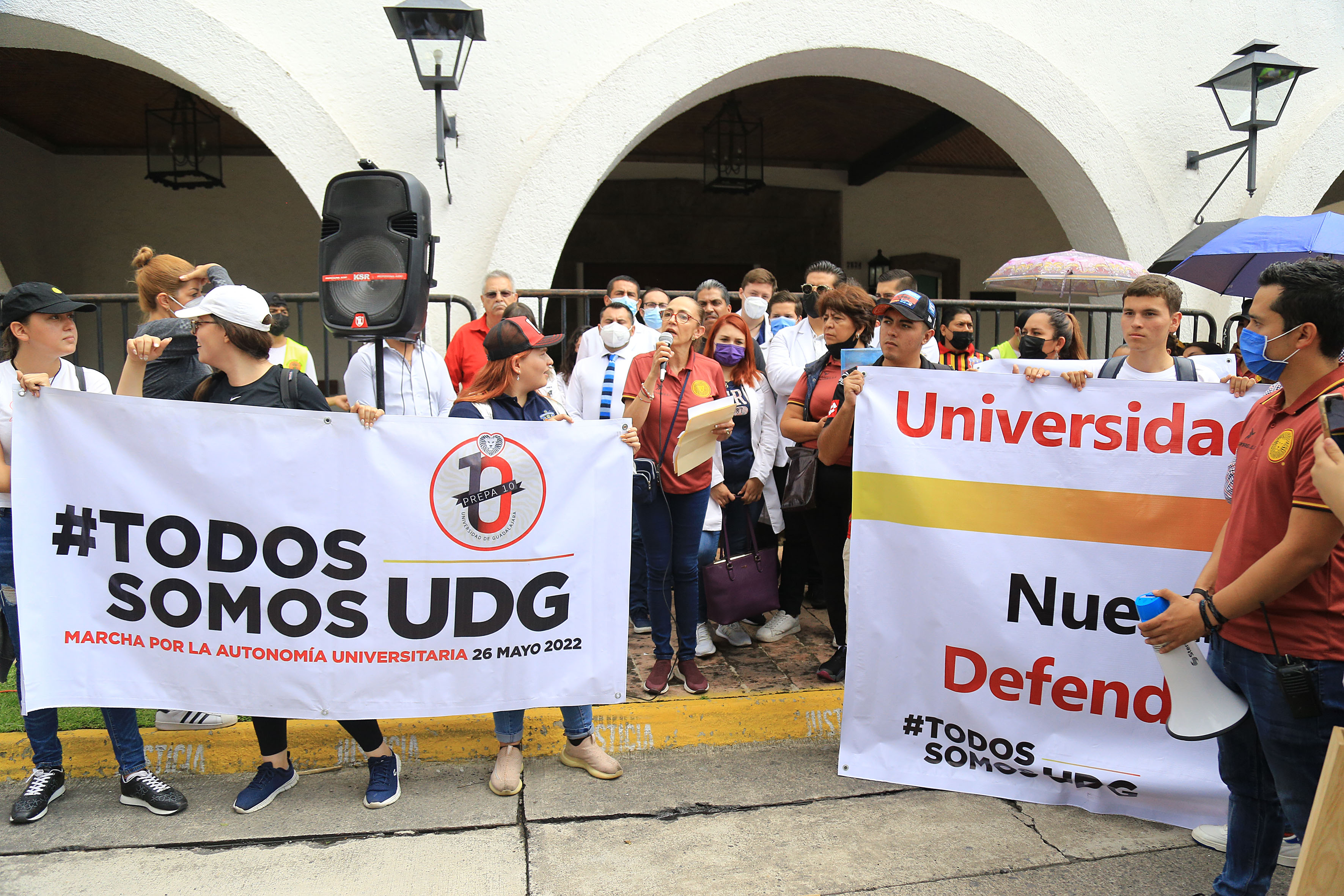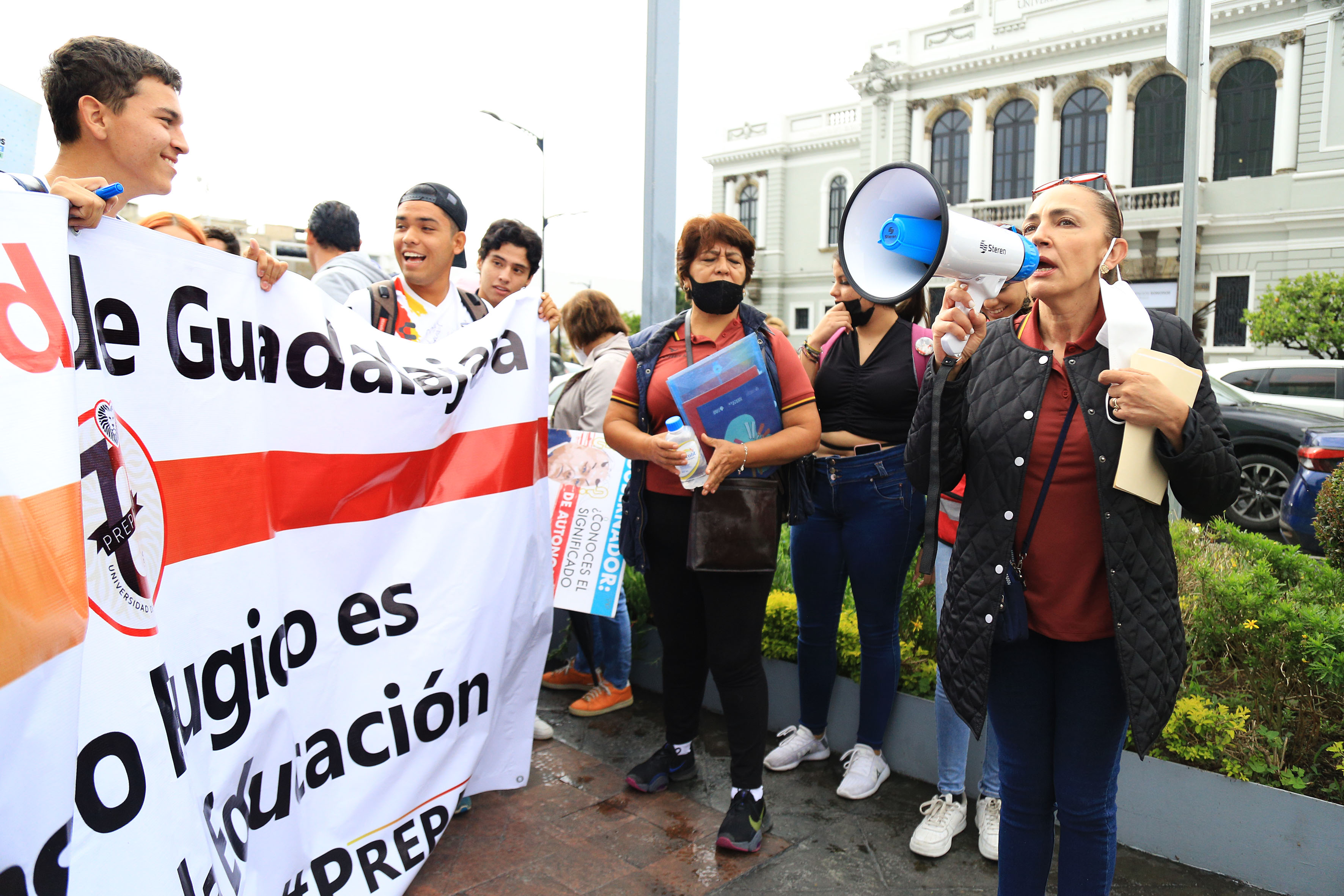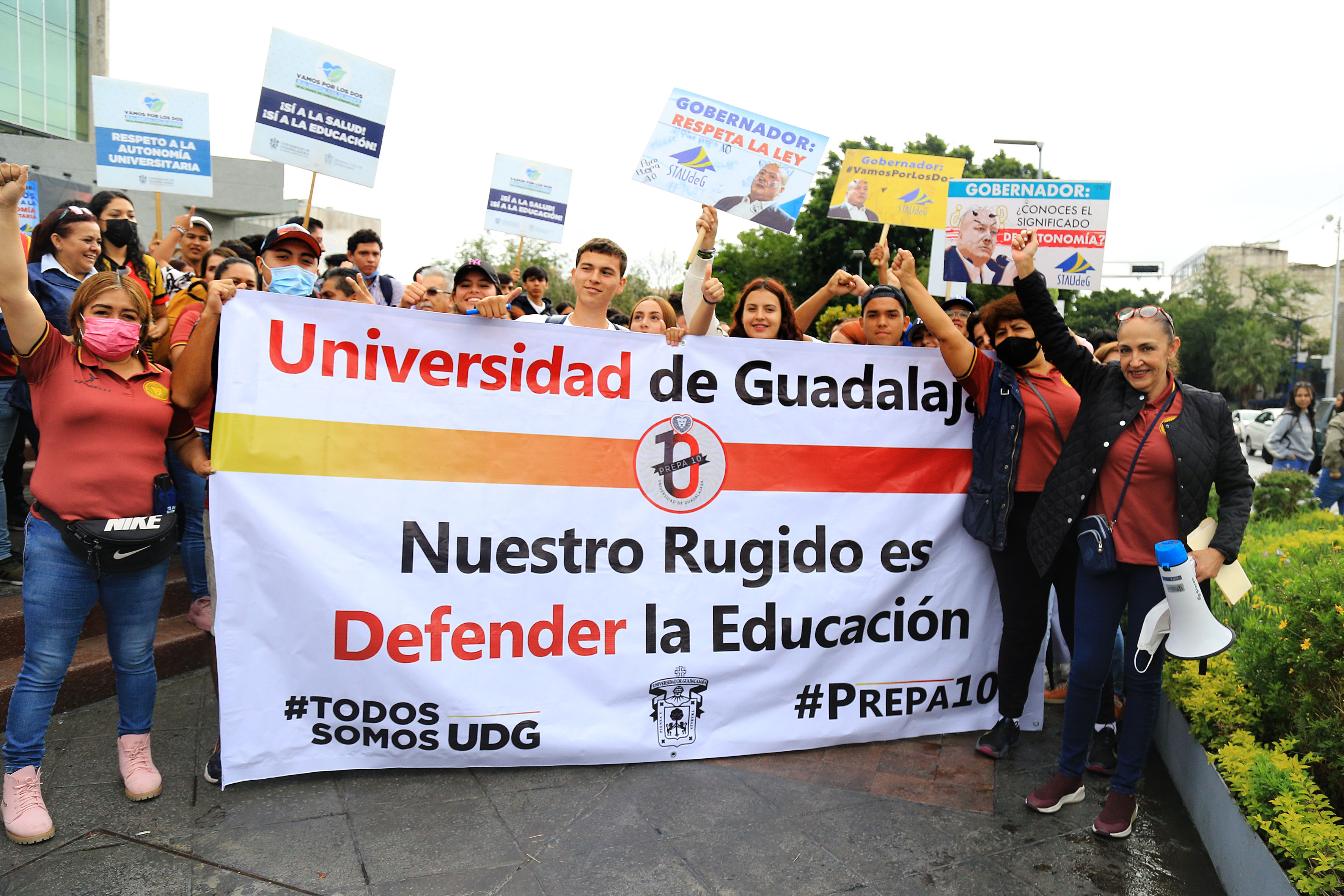 “Amor es tener seguridad en el Estado; eso es amor. Amor es defender a la educación y el futuro de los estudiantes, el respeto a la autonomía universitaria. Exigimos al gobernador que no trate de manera irrespetuosa a la UdeG”, dijo ante los presentes.
