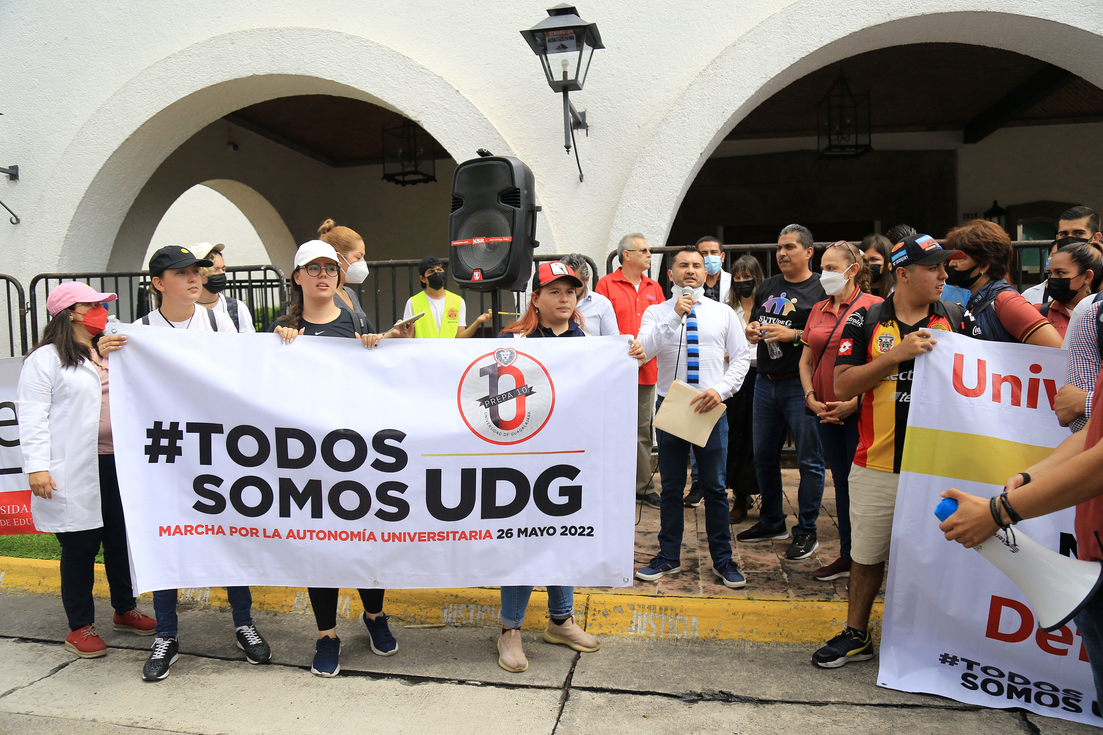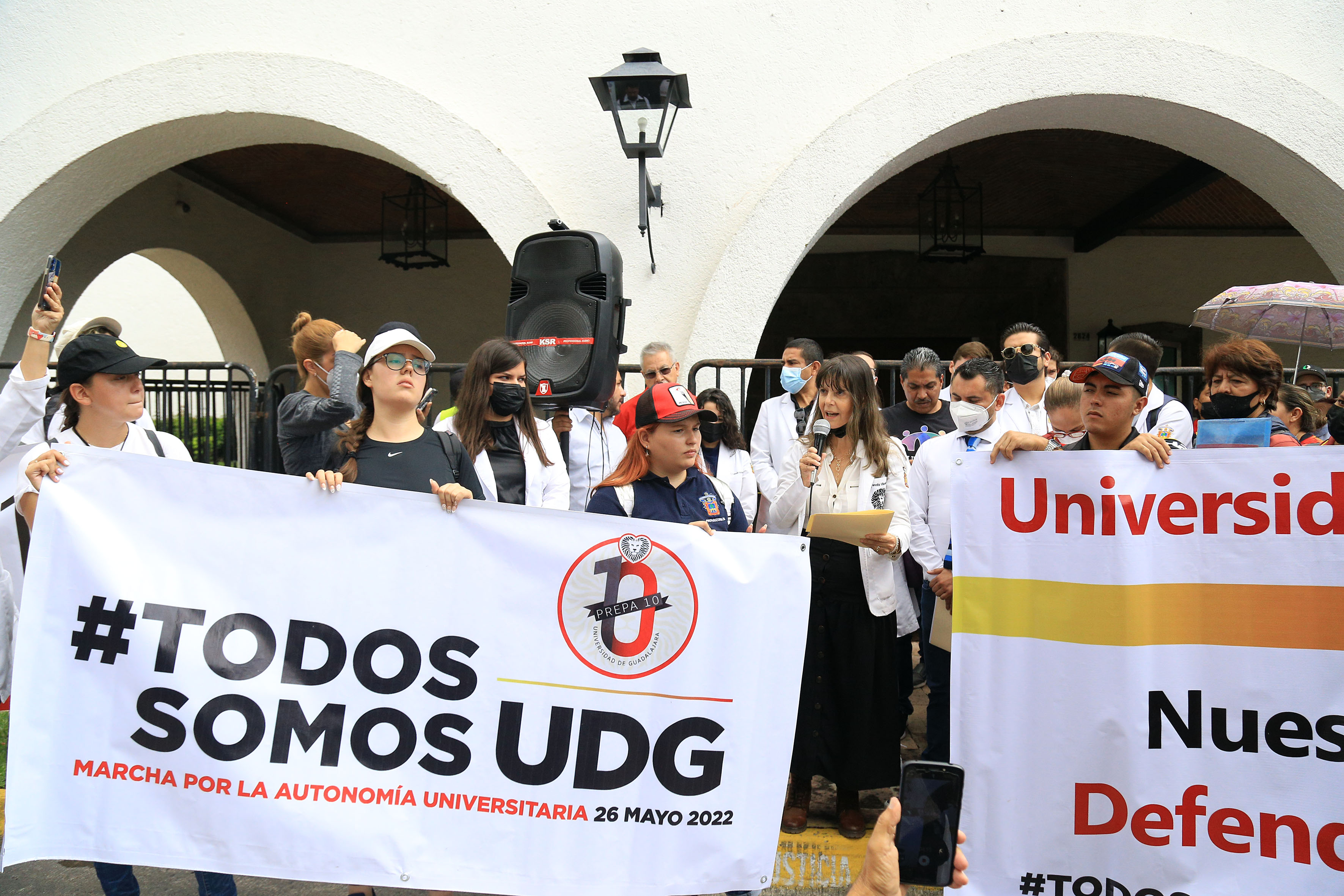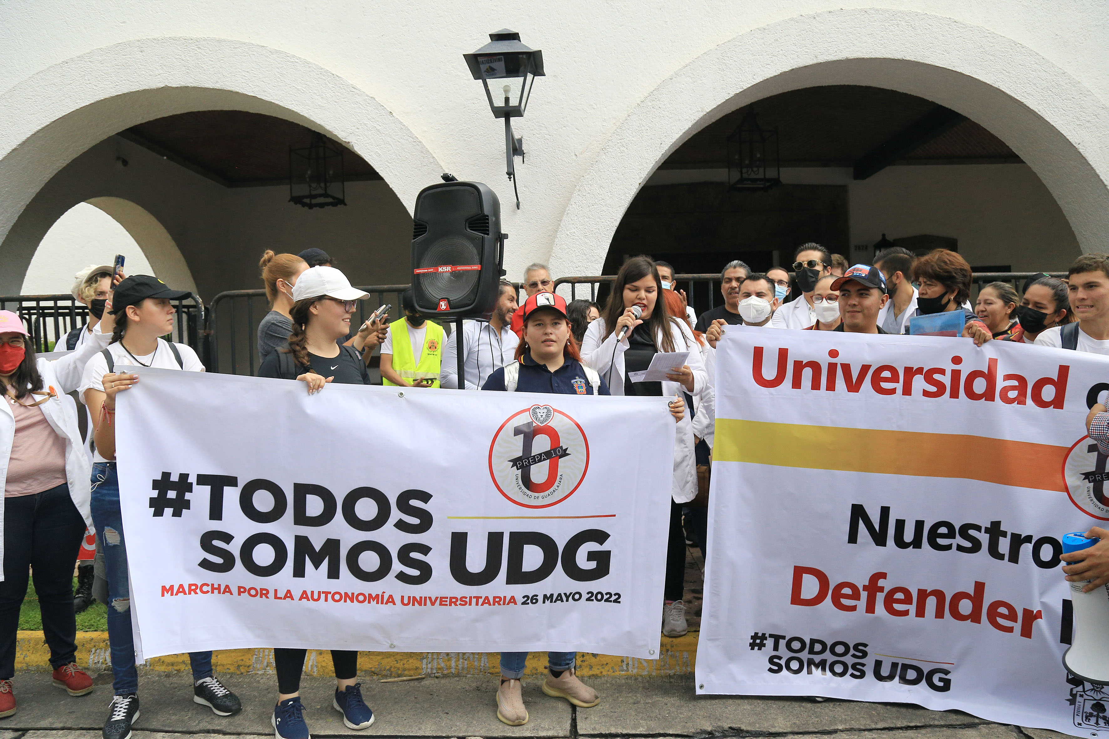 “Amor es tener seguridad en el Estado; eso es amor. Amor es defender a la educación y el futuro de los estudiantes, el respeto a la autonomía universitaria. Exigimos al gobernador que no trate de manera irrespetuosa a la UdeG”, dijo ante los presentes.