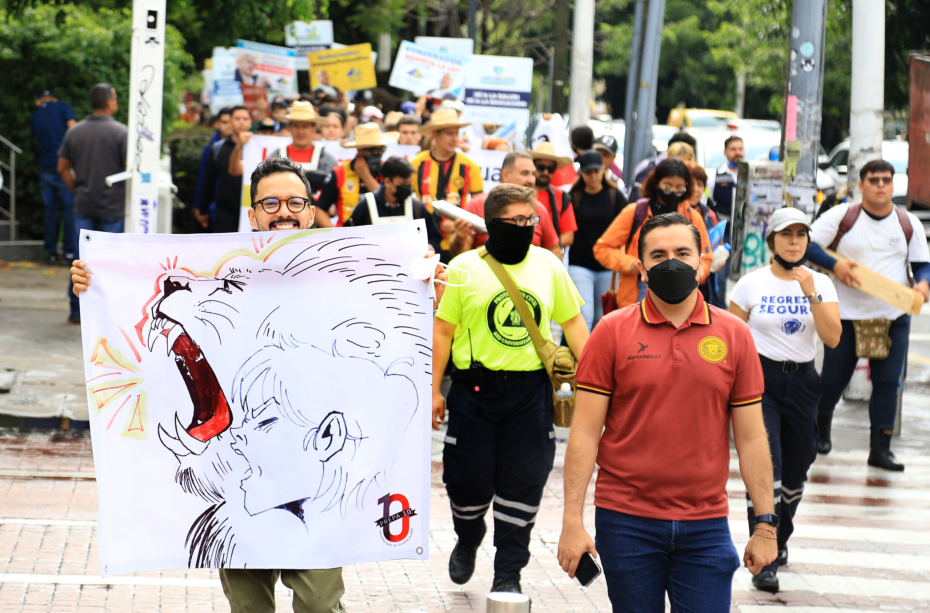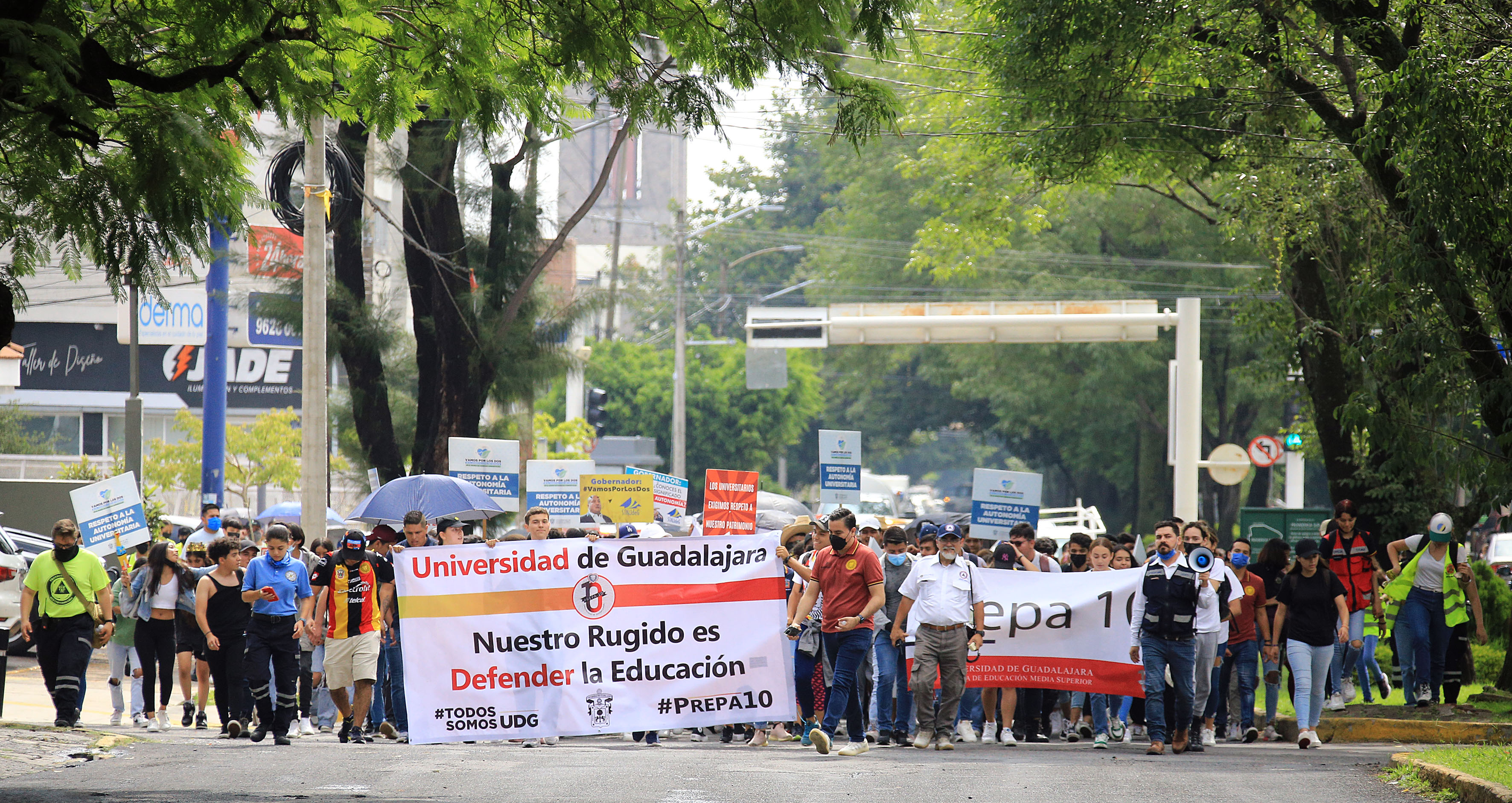 Los manifestantes partieron de la explanada del edificio de Rectoría General hacia Casa Jalisco; con batucada y un gran ambiente festivo, comunidad académica del CUCS y jóvenes y personal del plantel, protestaron por el recorte de 140 millones de pesos al Museo de Ciencias Ambientales, por parte del gobierno del Estado.