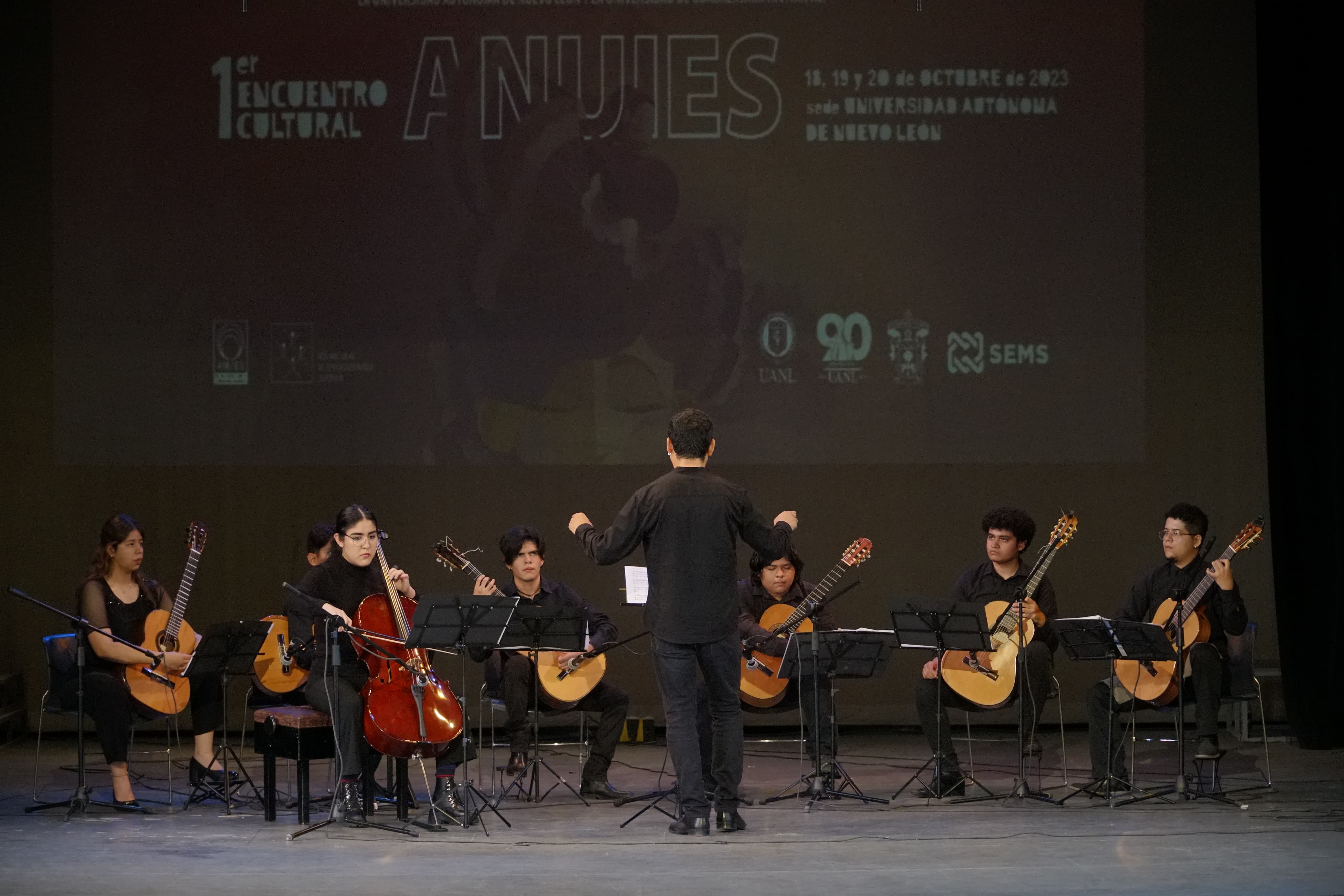 La emblemática cumbia Cien Años de Macondo que ha sido interpretada por personalidades como Óscar Chávez, fue la pieza que tocó la agrupación Cantoamérica de la Preparatoria 10 de la Universidad de Guadalajara (UdeG) y despertó las palmas de las y los jóvenes que abarrotaron las gradas del Aula Magna “Fray Servando Teresa de Mier” del Colegio Civil Centro Cultural Universitario de la Universidad Autónoma de Nuevo León (UANL), en el segundo, y último día, de actividades del primer Encuentro Cultural de la Asociación Nacional de Universidades e Instituciones de Educación Superior (ANUIES), celebrado en Monterrey.