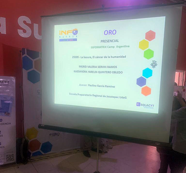 El equipo del proyecto “La basura, el cáncer de la humanidad”, integrado por las estudiantes Ingrid Valeria Servín Ramos y Kassandra Yarelin Quintero Obledo, ganó la medalla de oro y el pase para representar a México en Infomatrix con sede en La Pampa, Argentina, del 28 al 30 de septiembre.