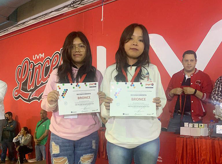 También en el encuentro de Infomatrix en la UVM, el proyecto “La amenaza oculta en las profundidades terrestres”, de José Miguel Gutiérrez López, ganó medalla de plata y el de “Las máquinas electrostáticas y sus efectos”, de Alexa Michel Morales Reyes y Priscila Guadalupe Rentería Macías, obtuvo bronce.