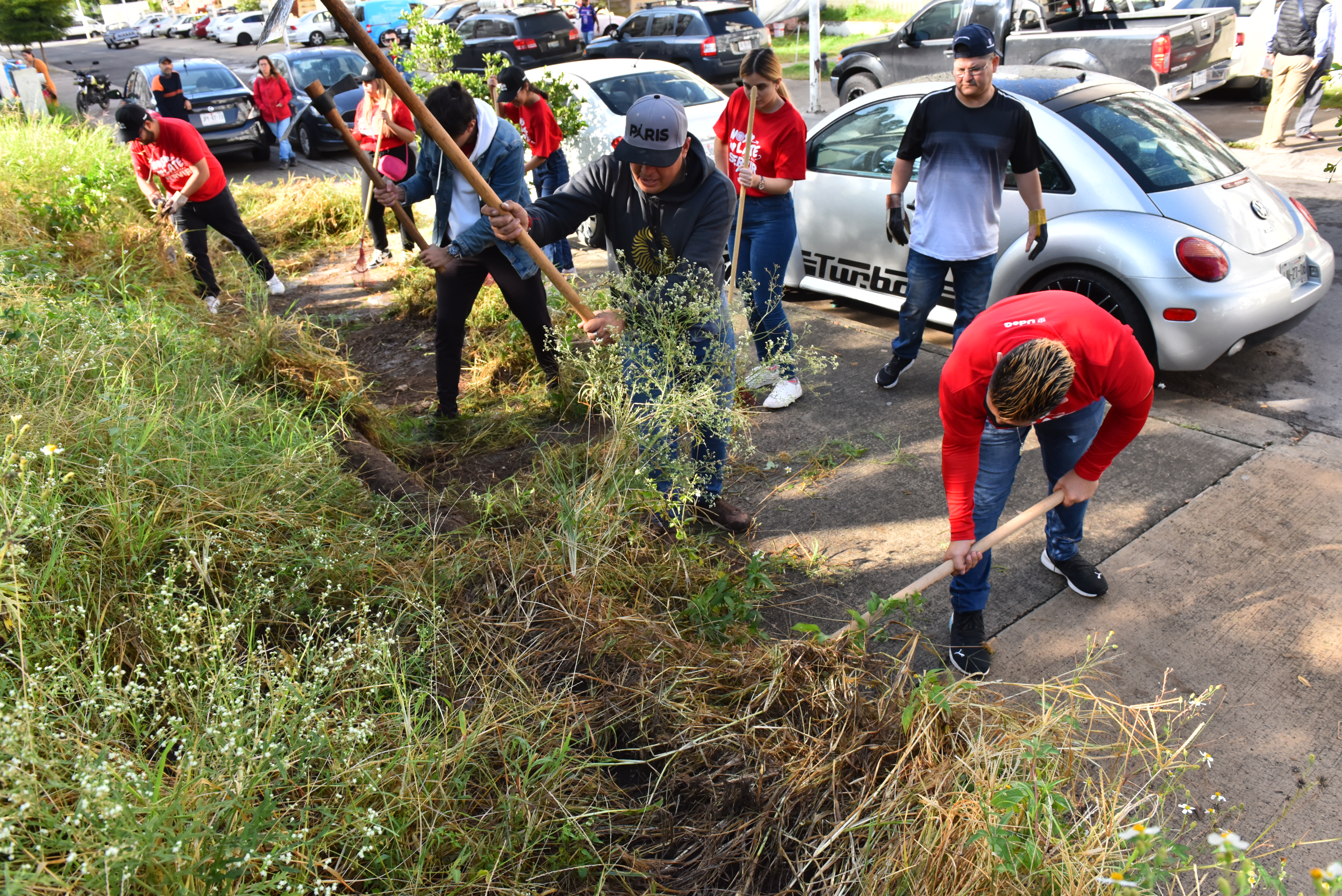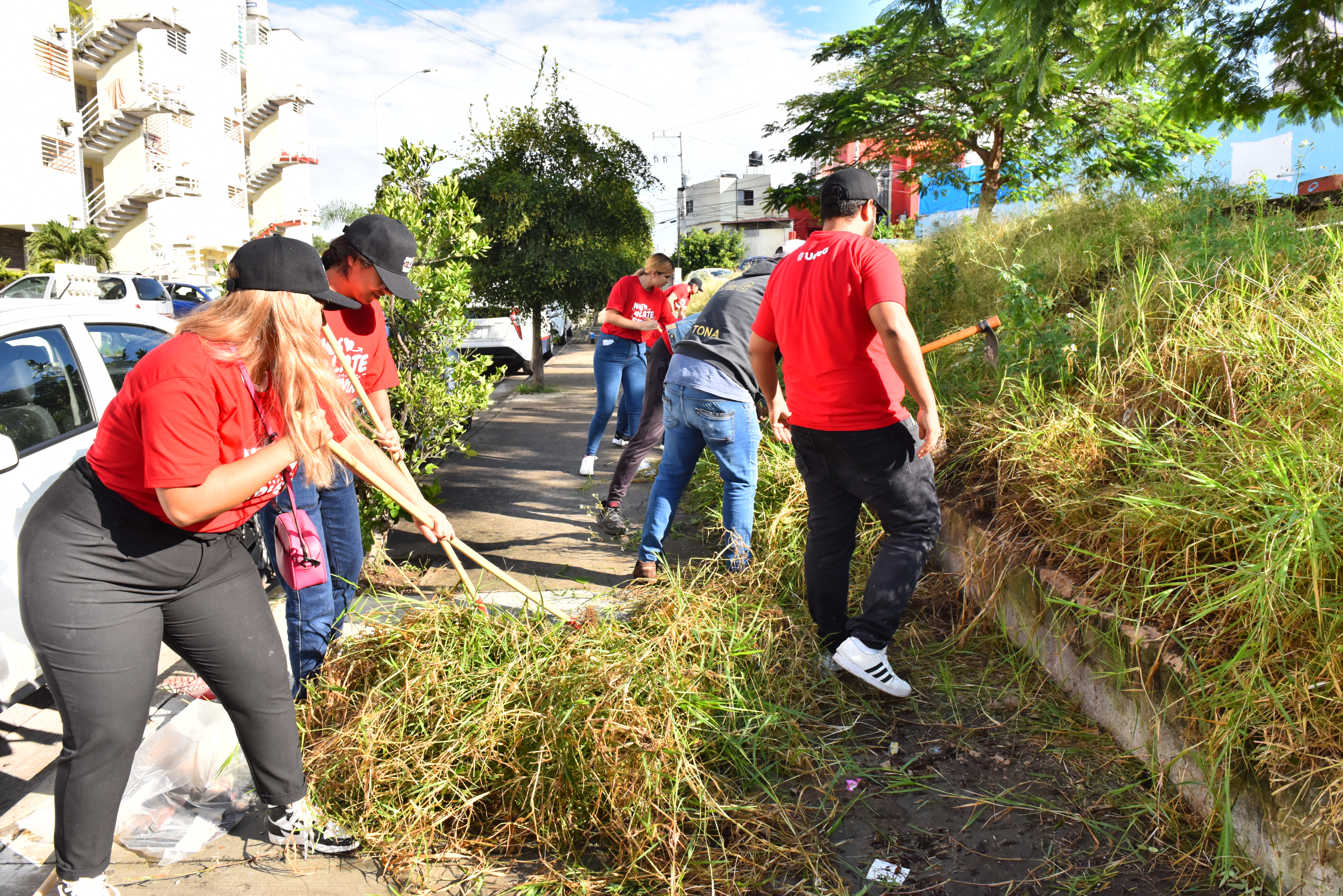 Con palas, tijeras, azadones y escobas para jardín, las y los universitarios limpiaron y rehabilitaron un baldío cercano a una zona habitacional en la colonia Lomas de Oblatos, en el municipio de Guadalajara, como parte del programa “Luchamos pensando y trabajando”, que la Universidad de Guadalajara (UdeG) lleva a cabo en protesta por el recorte presupuestario por parte del Gobierno de Jalisco.