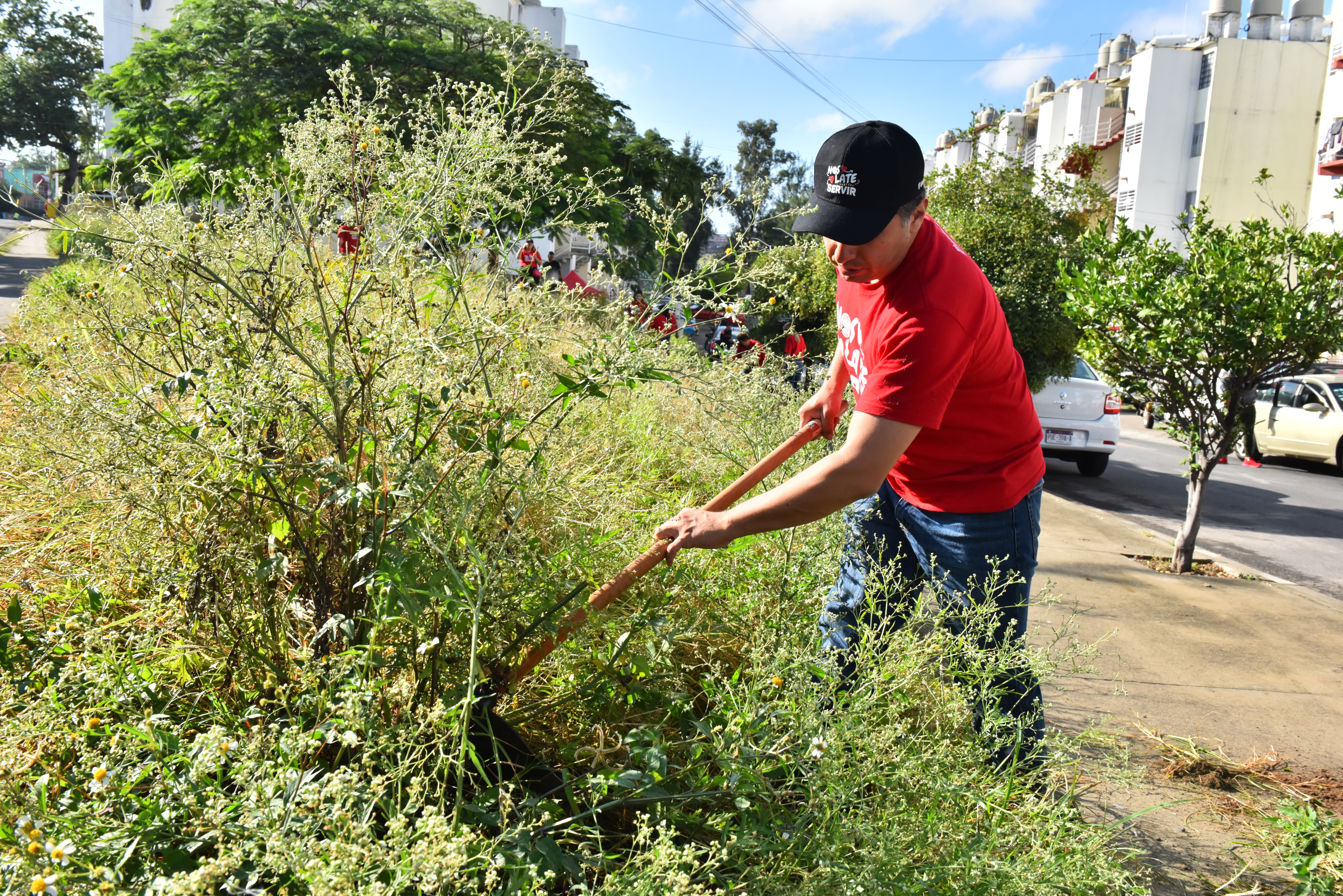 Uriel Ávalos es estudiante de la licenciatura de Criminología del Centro Universitario de Ciencias Sociales y Humanidades y la mañana de este sábado prestó sus manos para limpiar el baldío como un servicio a los vecinos.