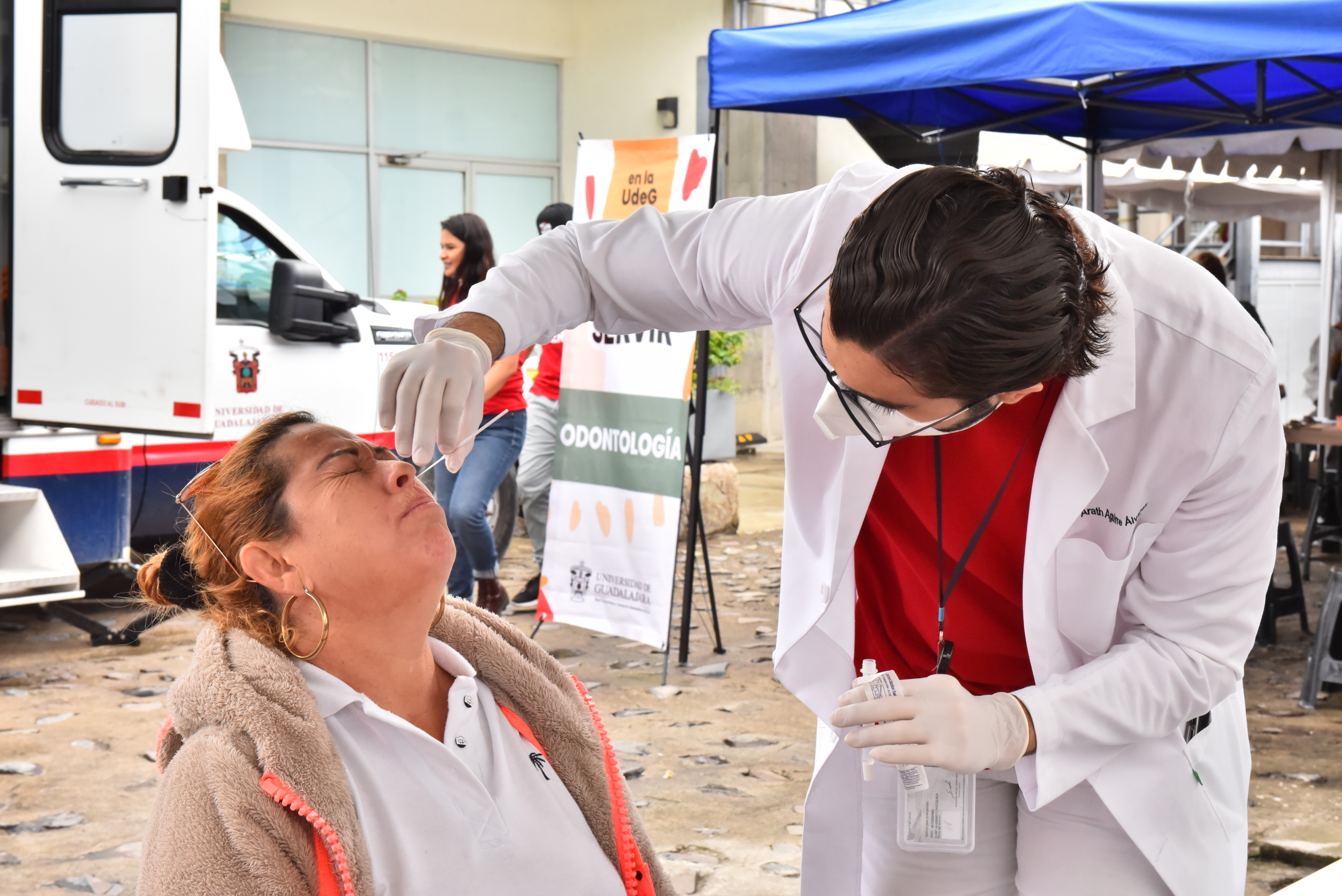 Cristina González, de 53 años de edad, acudió a la preparatoria tras enterarse por la televisión de los servicios que la UdeG brindaría. Además de la toma de glucosa, hipertensión, signos vitales y medición del peso, recibió el servicio de revisión y limpieza dental que hacía tiempo necesitaba.