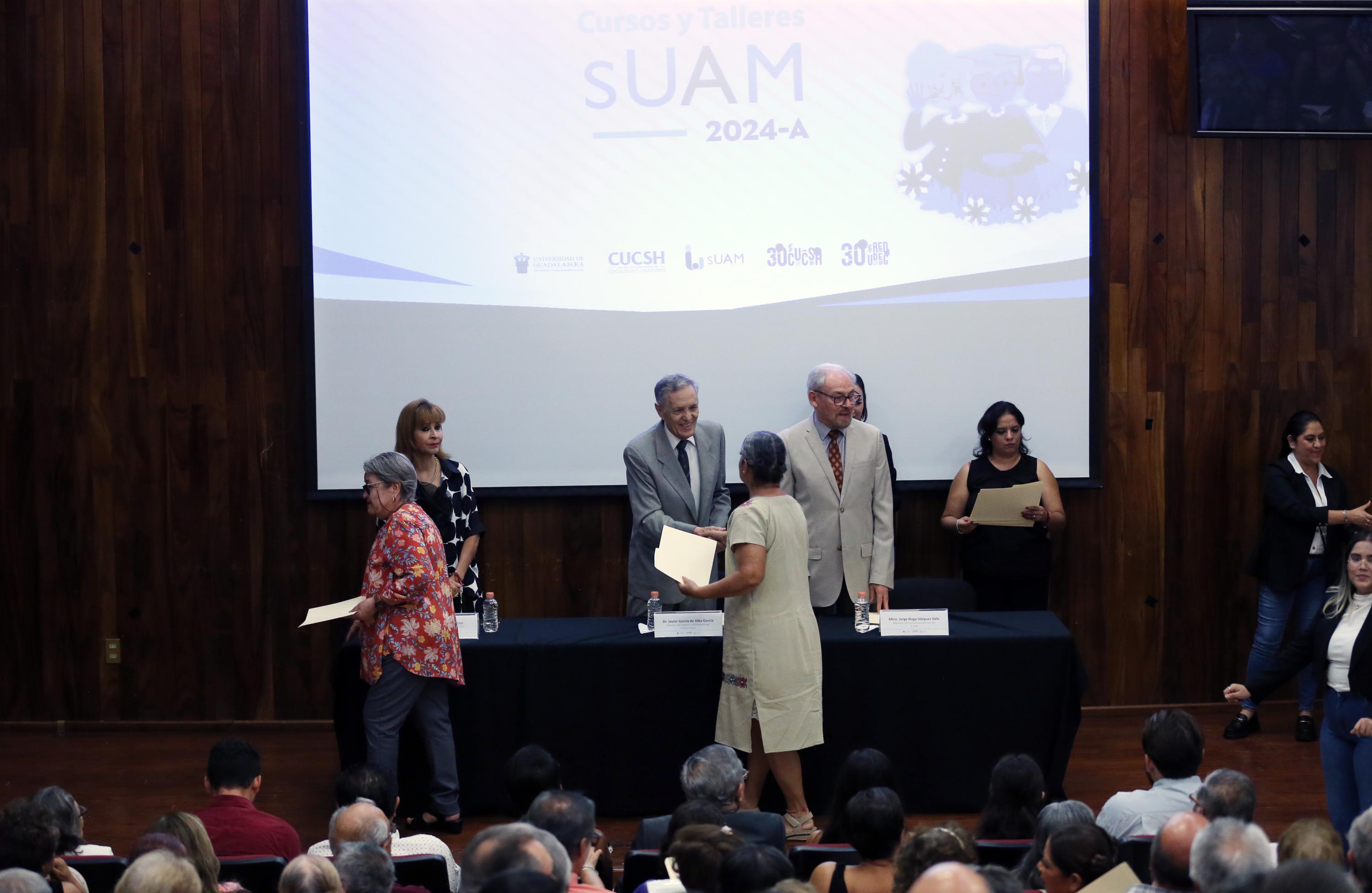 El Sistema Universitario del Adulto Mayor (SUAM) ha recuperado la matrícula perdida durante la pandemia del COVID-19 gracias a los cursos virtuales, declaró el Director del sistema, doctor Javier García de Alba García, durante la ceremonia de clausura de los talleres 2024-A, en el Auditorio Silvano Barba del Centro Universitario de Guadalajara (CUGDL).