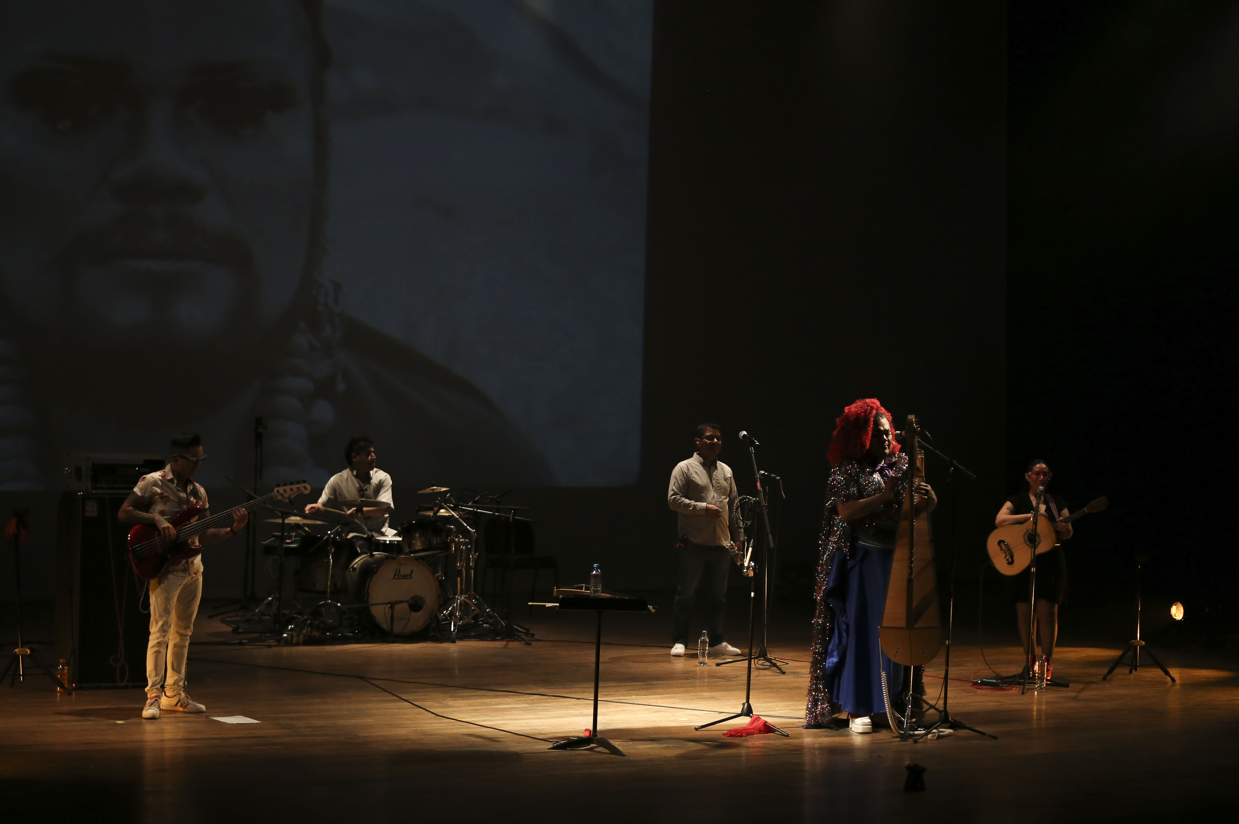 “Voy a ofrendar mis lágrimas al Tlalocan y su montaña, voy a ofrendar las lágrimas de dolor. Dejaré todo mi cuerpo con la punta de un maguey. Cantaré subiendo el cerro llorando el aguamiel”, recitó antes de cantar y tocar el tema “Melancolía”.