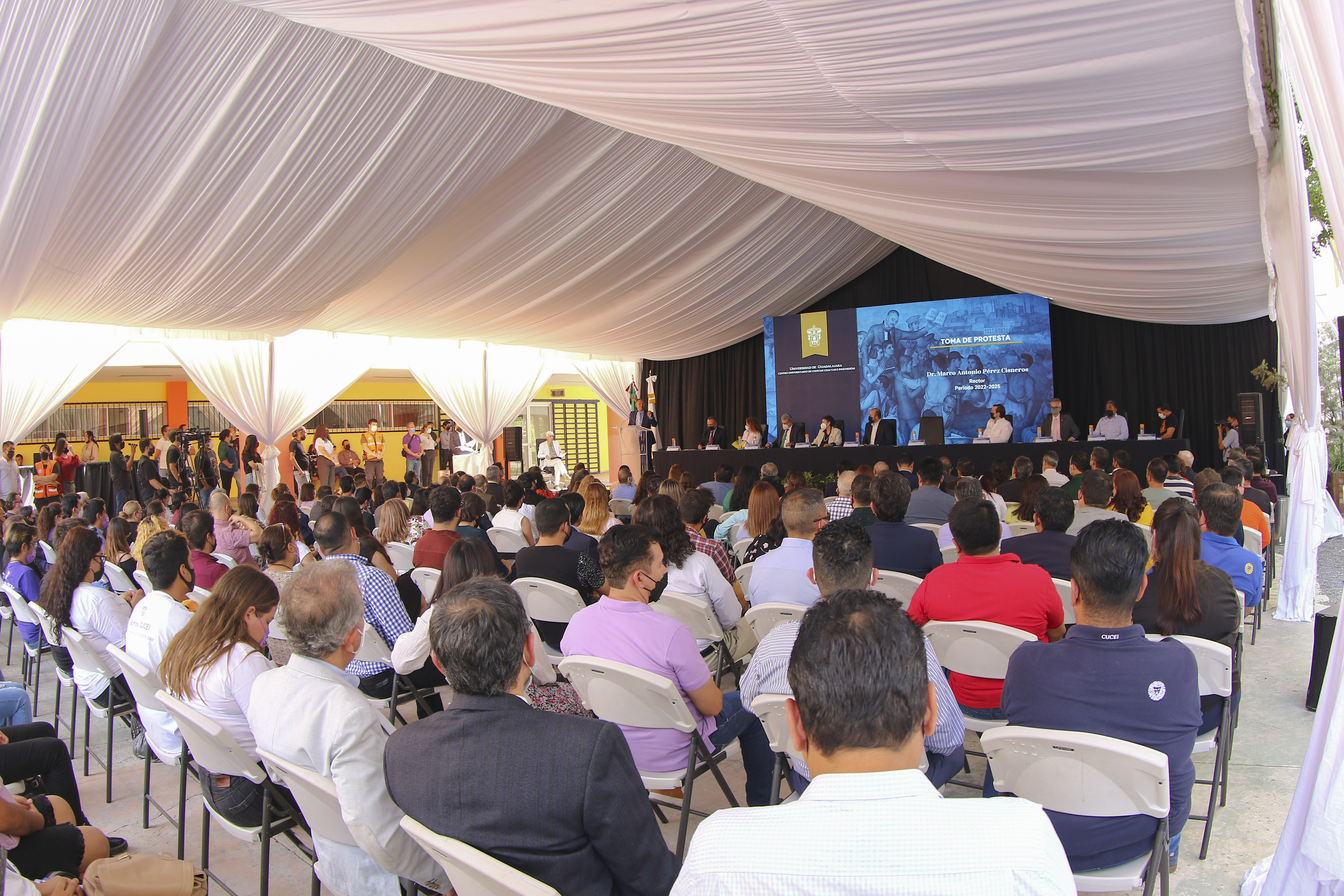 Tras tomar protesta como Rector del CUCEI, ante su comunidad universitaria, el doctor Pérez Cisneros estableció como primer compromiso no detener las áreas funcionales e innovar en las áreas donde algo no funcione.
