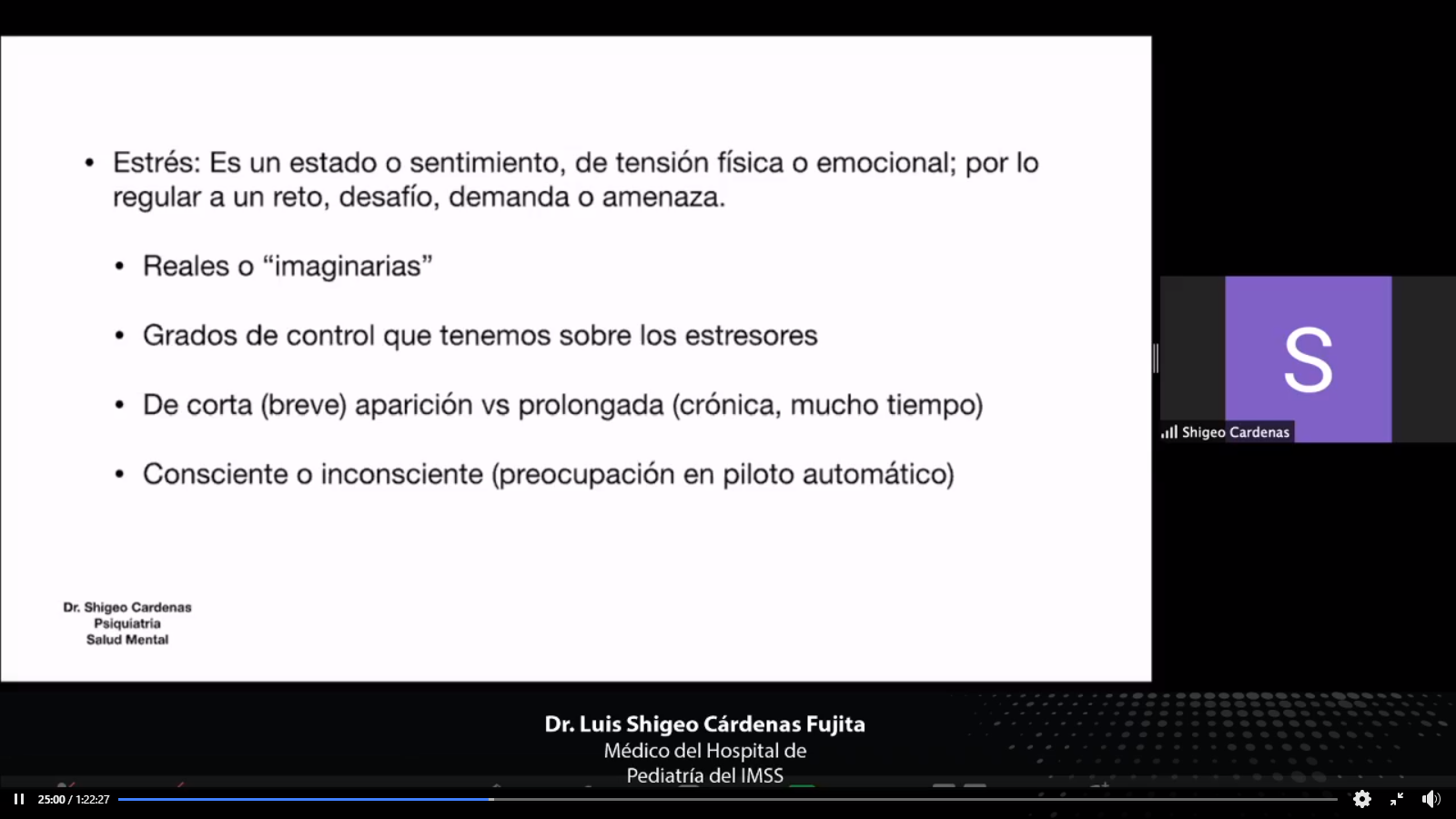 El médico adscrito al Departamento de Salud Mental, del Hospital de Pediatría del Centro Médico Nacional de Occidente (IMSS) y a la Unidad de Niños y Adolescentes del Hospital San Juan de Dios, doctor Luis Shigeo Cárdenas Fujita, coincidió en señalar que el estrés es normal y funcional, y que lo necesitamos todos los seres humanos; el problema es el grado de intensidad o de tiempo que dure ante una situación real o imaginaria.