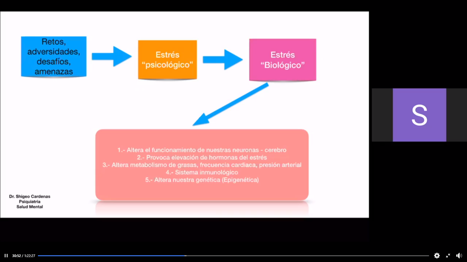 “El estrés crónico altera el funcionamiento de nuestras neuronas, provoca elevación de las hormonas del estrés; altera el metabolismo de grasas, frecuencia cardiaca, presión arterial, y afecta el sistema inmunológico y nuestra genética; hace envejecer a las células, y eso puede desencadenar otras enfermedades”, aseveró.