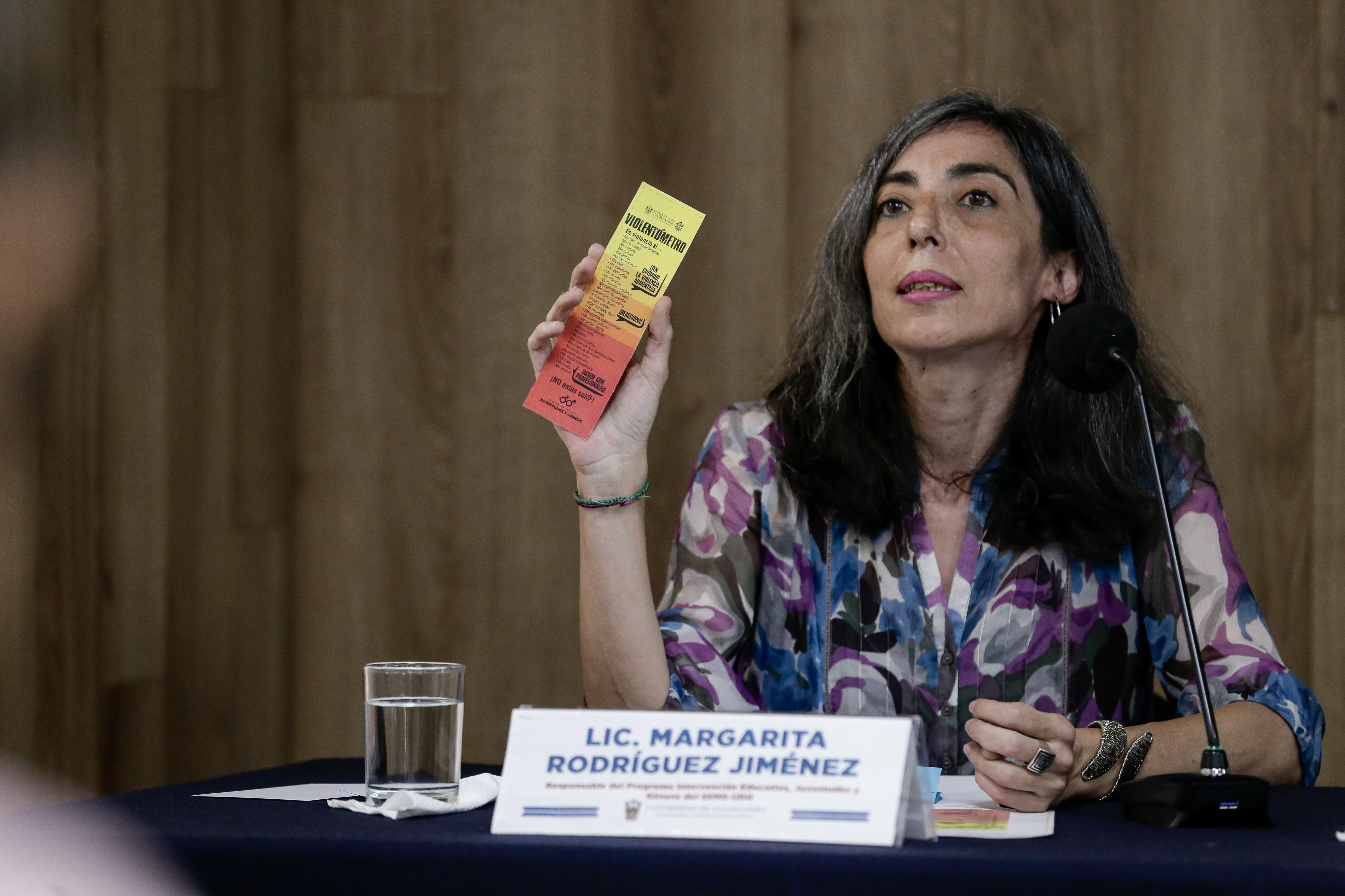La responsable del Programa Intervención Educativa, Juventudes y Género del Sistema de Enseñanza Media Superior (SEMS), licenciada Margarita Rodríguez Jiménez, habló de la importancia del uso del Violentómetro, un material que busca sensibilizar y formar en la prevención de las violencias de género. Agradeció también la participación de los alumnos de 26 preparatorias metropolitanas y regionales, y de la Colectiva Hilos, quienes han creado una red de hilos rojos que simbolizan la sangre de las víctimas de violencia de género y feminicidios, misma que, al ser terminada, será colgada de la Biblioteca Pública del Estado de Jalisco Juan José Arreola.
