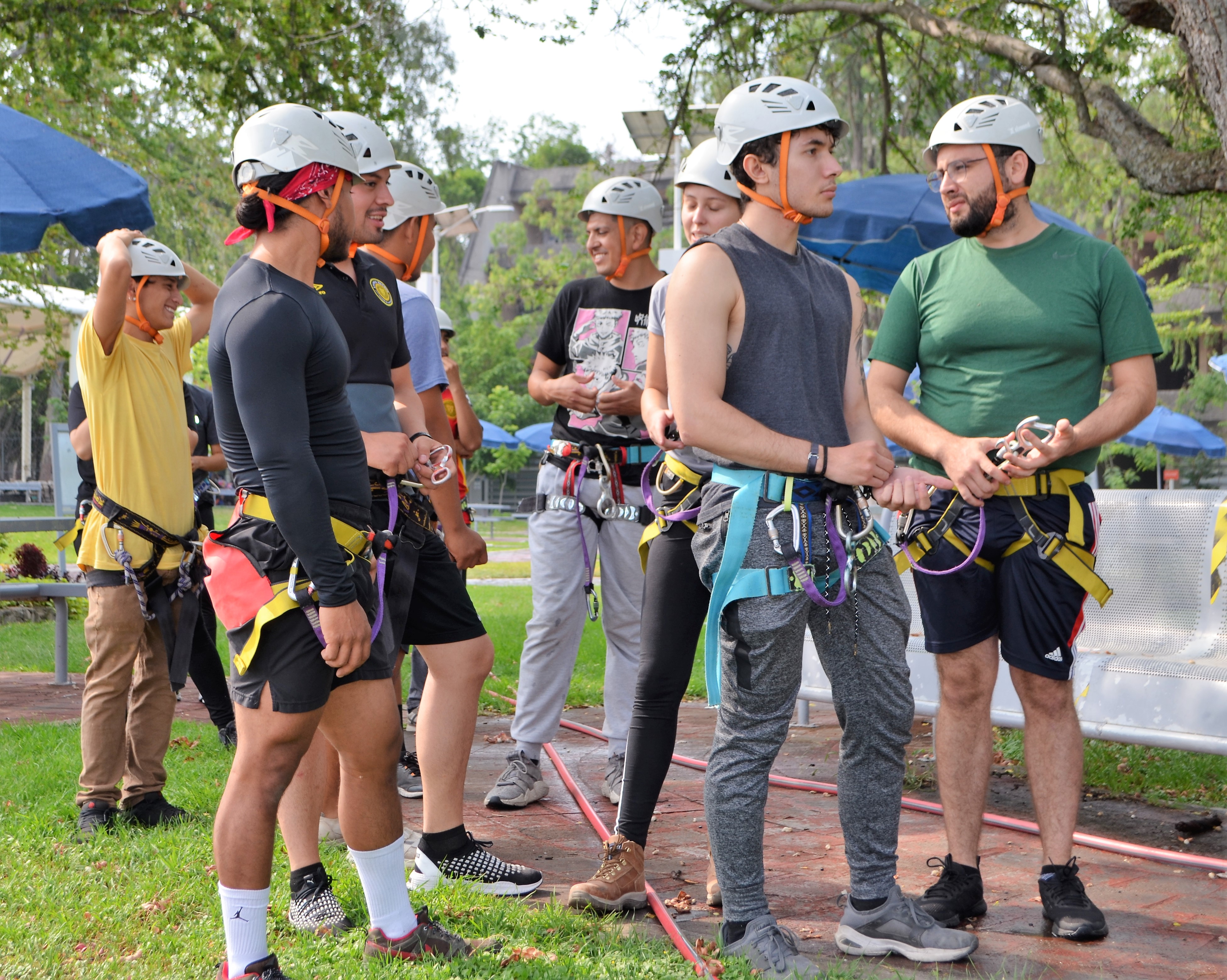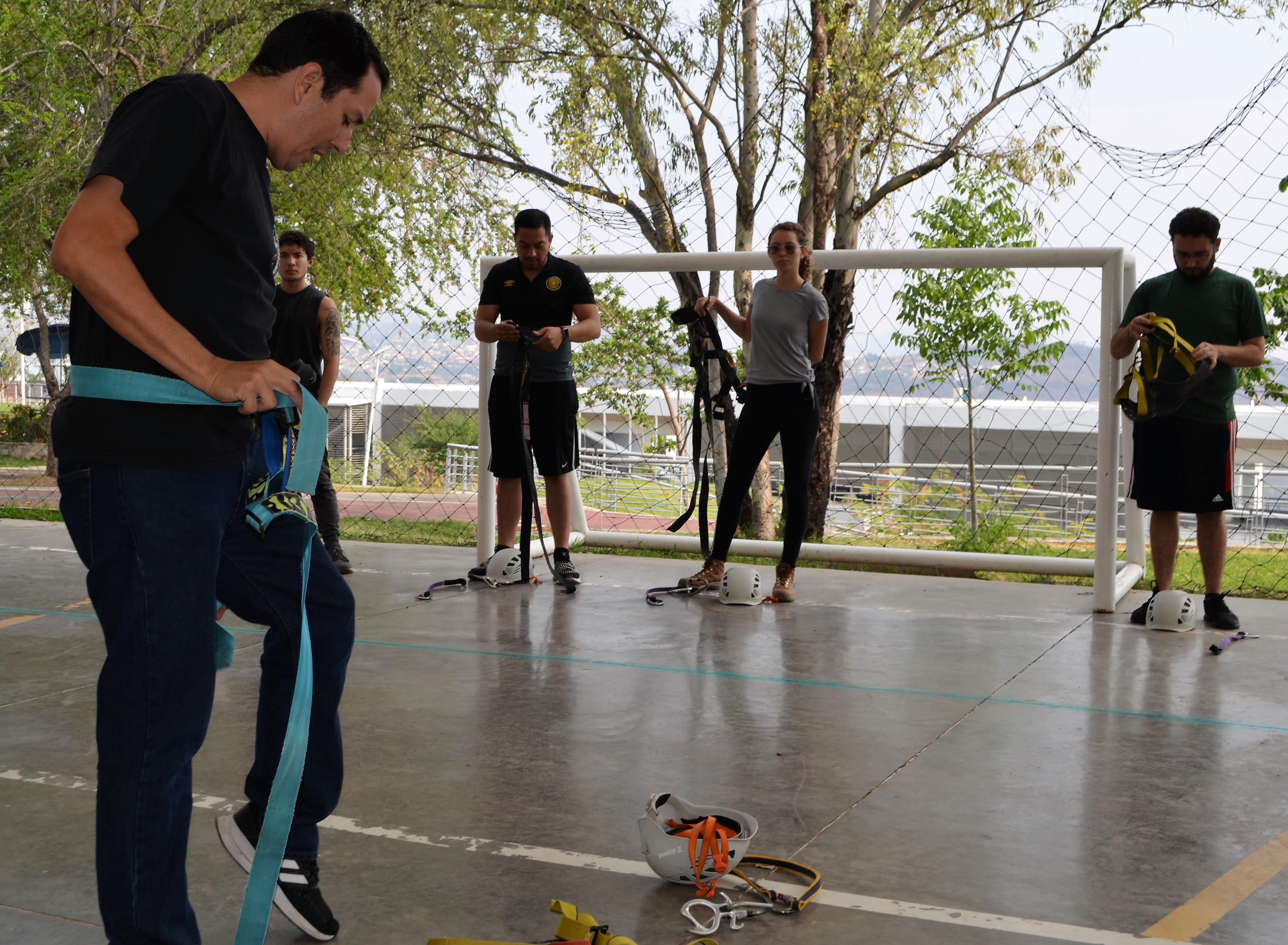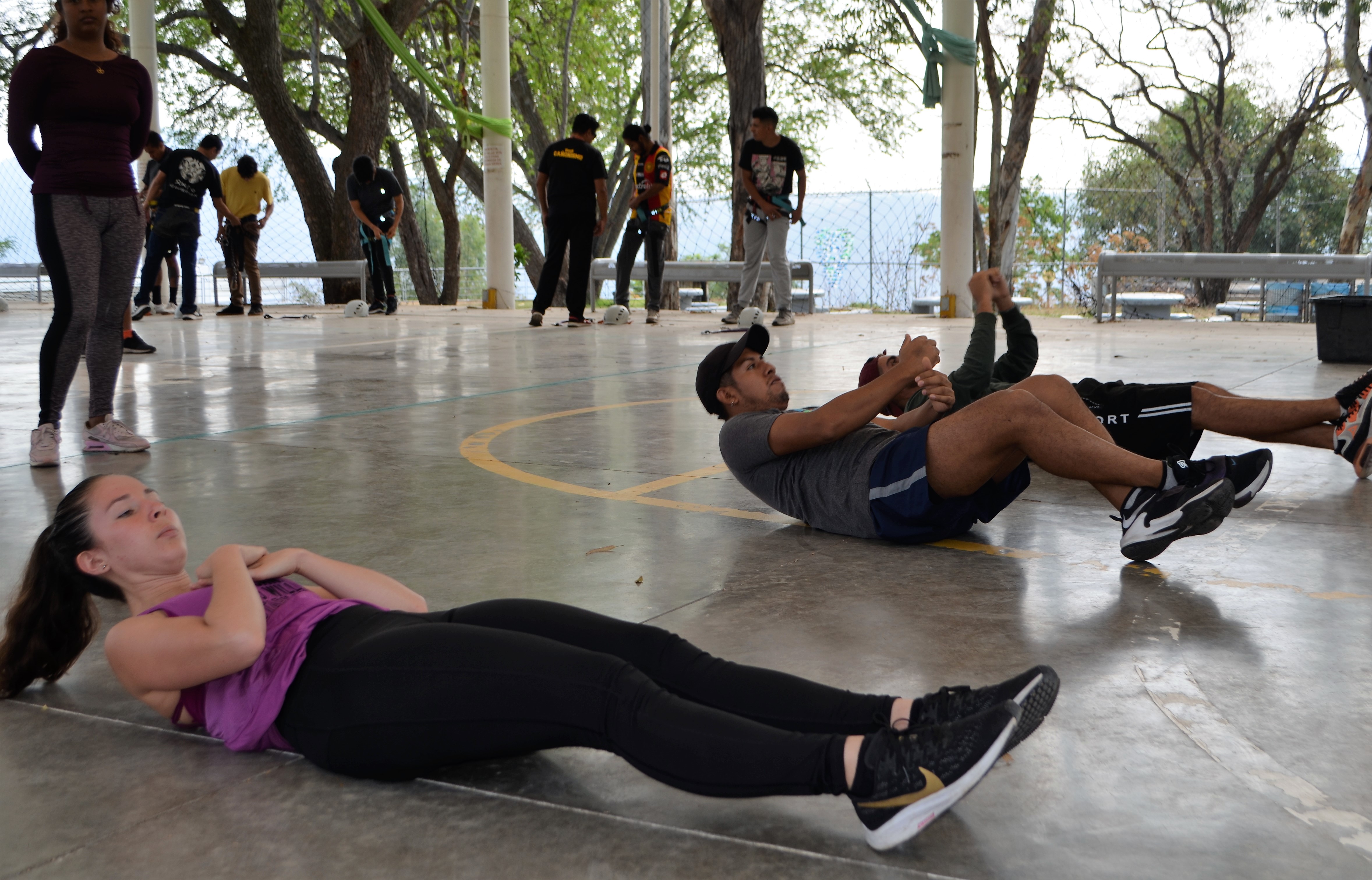 Pasadas de las 9 de la mañana, y por un espacio aproximado de cuatro horas, alrededor de 30 alumnas y alumnos de esta Casa de Estudio, se reunieron en las áreas verdes y canchas del CUAAD, para efectuar actividades de calentamiento, rendimiento físico, de capacidad cardiovascular, así como y actitud y movilidad en el rapel.