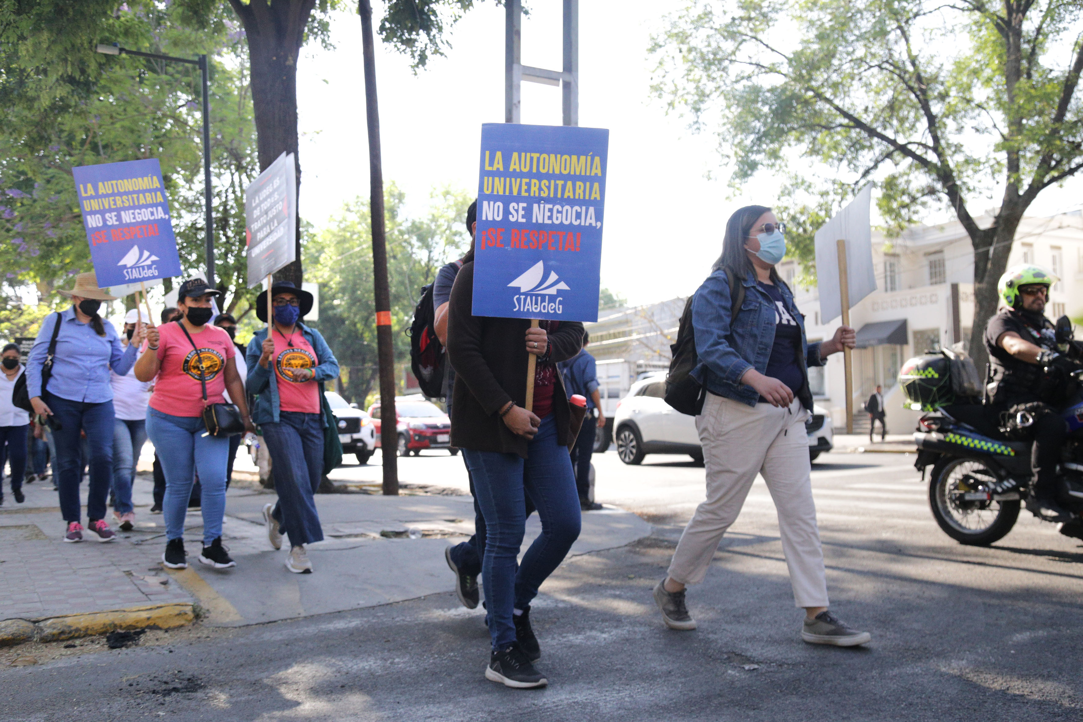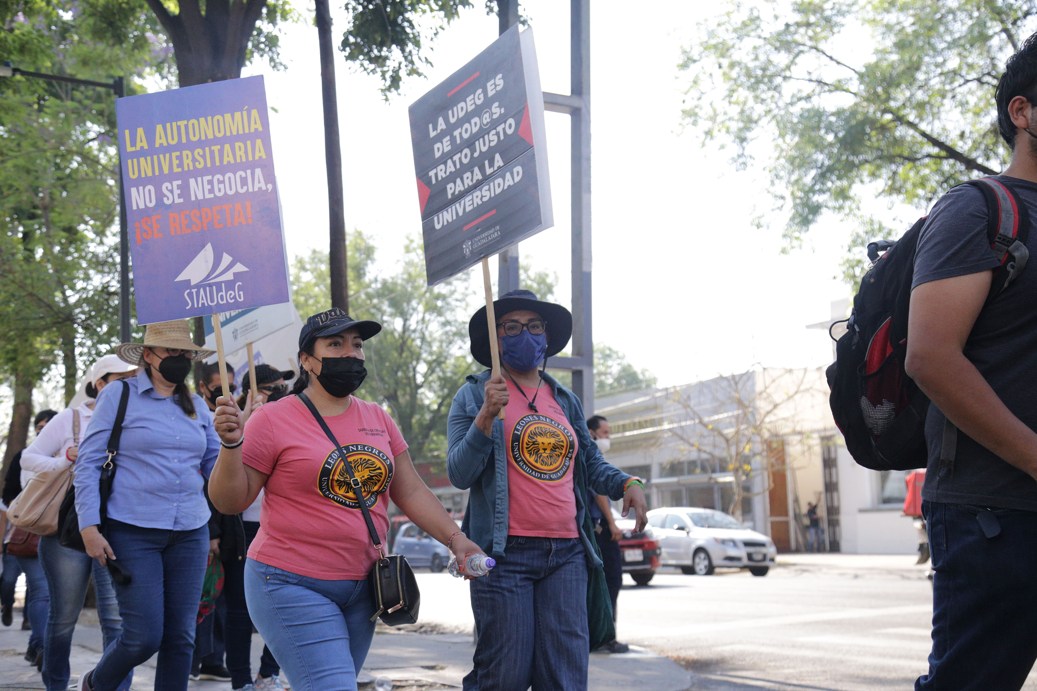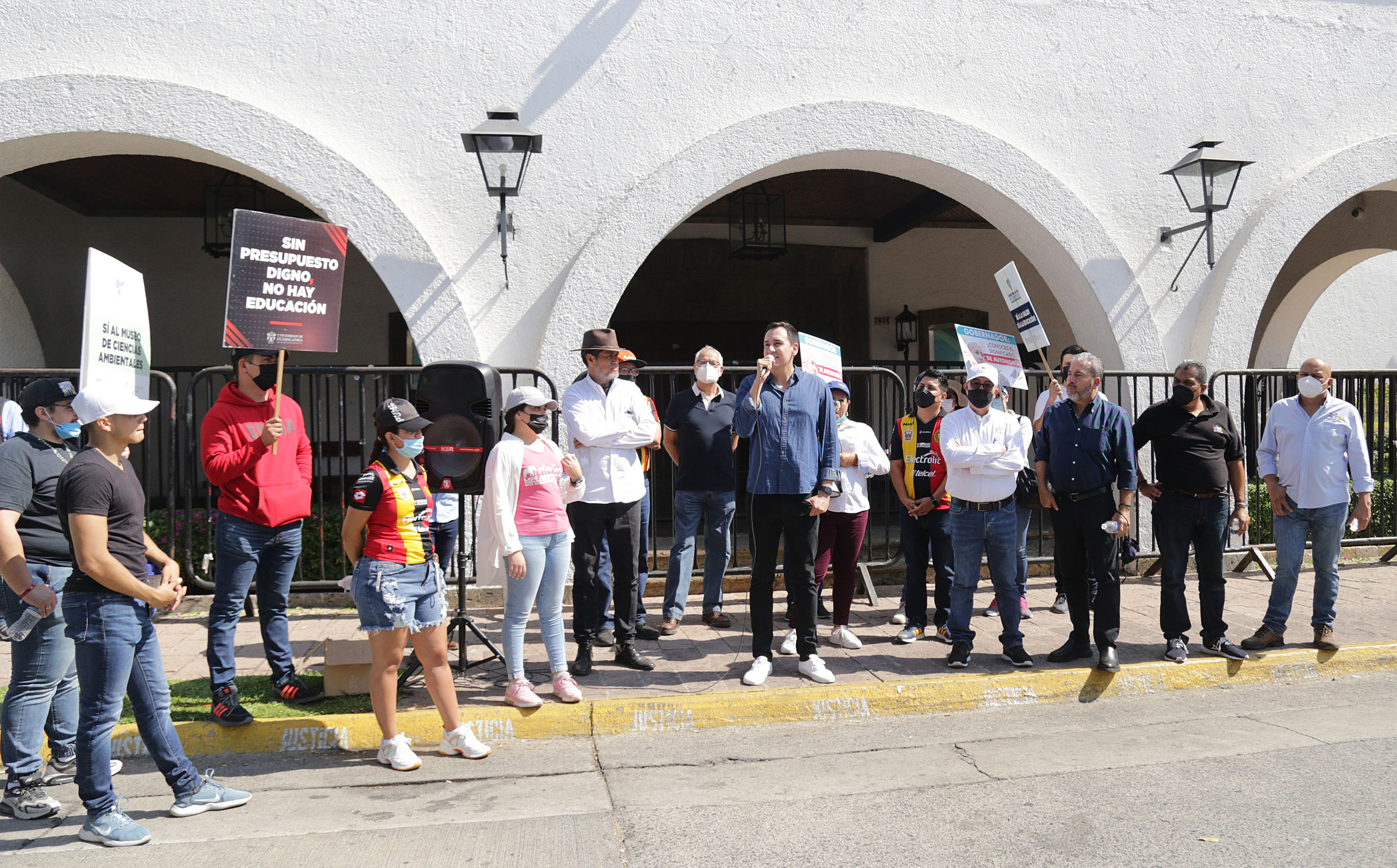 La caminata, que inició en la explanada del edificio de Rectoría General y concluyó afuera de Casa Jalisco, fue motivada por el recorte a la Universidad de Guadalajara (UdeG) de 140 millones de pesos que estaban destinados a la construcción del Museo de Ciencias Ambientales (MCA).
