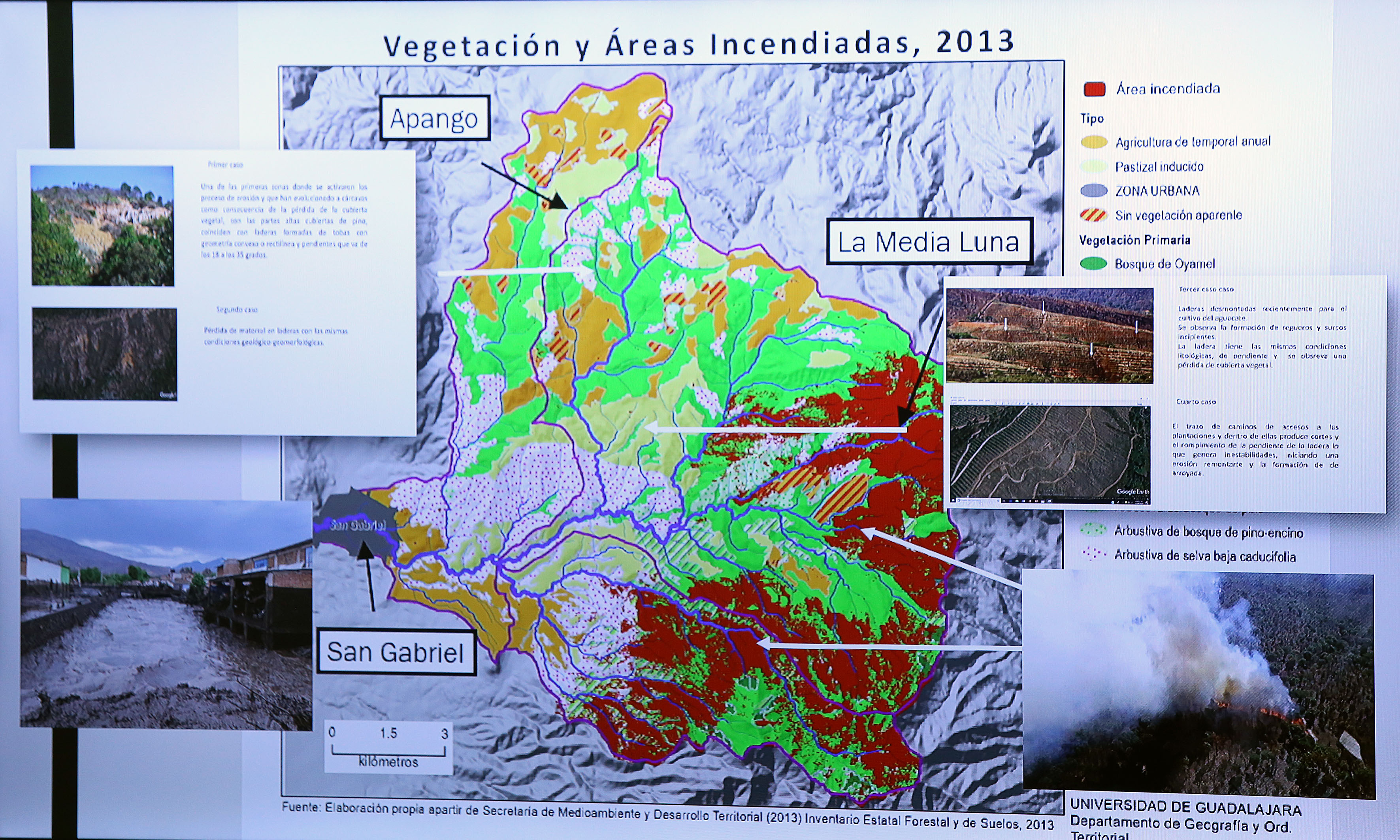 Sobre la posibilidad de que en este temporal ocurra otro alud en San Gabriel, Valdivia Ornelas no se atrevió a asegurarlo porque “no hay una estación meteorológica en San Gabriel y no contamos con información sobre las lluvias ahí; la posibilidad existe, por la falta de vegetación. No podemos contestar con exactitud, pero la idea es profundizar en el tema para que la autoridad haga intervenciones más completas”.