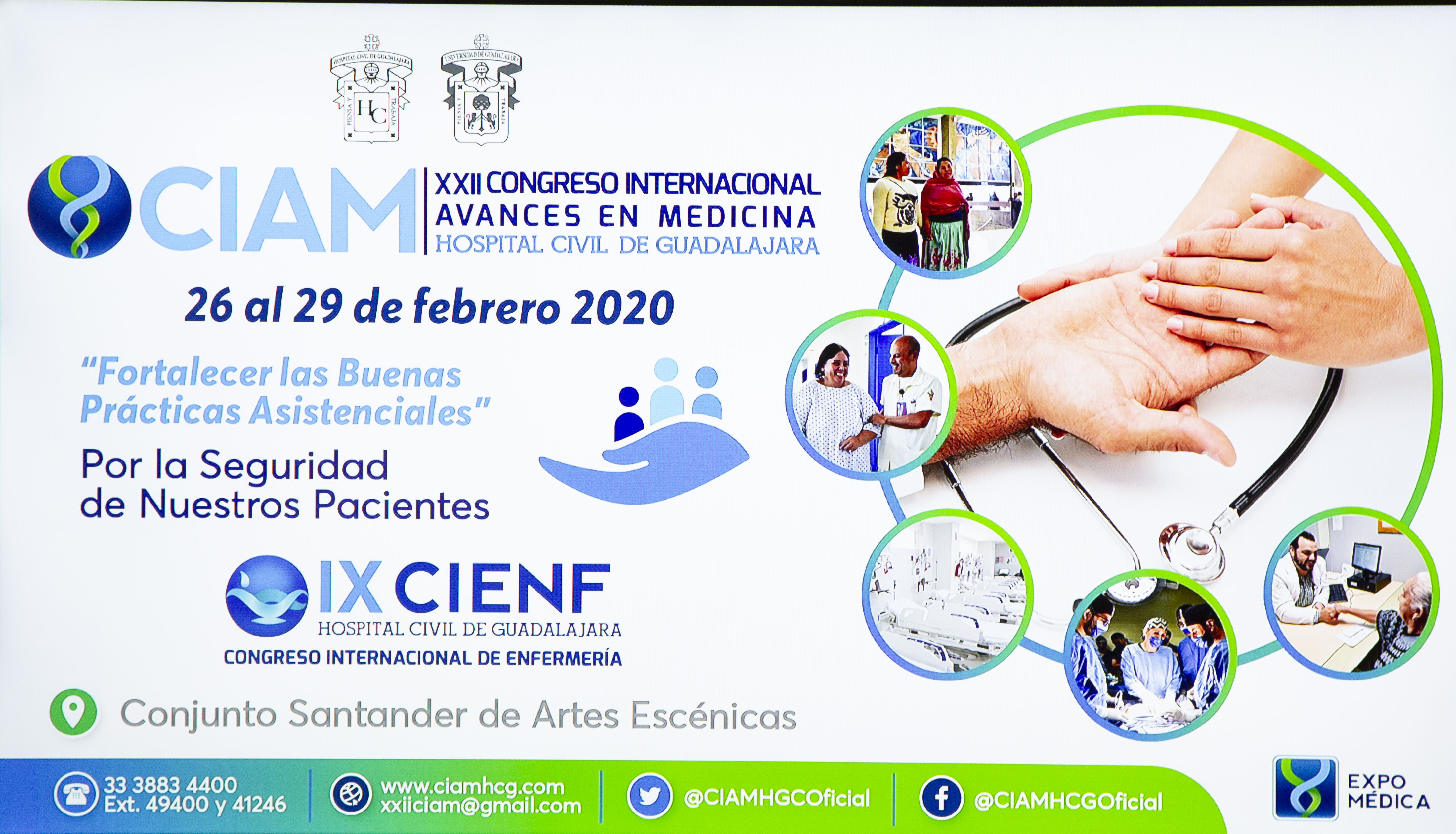 El CIAM 2020 se realizará del 26 al 29 de febrero en el Conjunto Santander de Artes Escénicas de la UdeG, y su eje temático general es “Fortalecer las buenas prácticas asistenciales”, con el lema “Por la seguridad de nuestros pacientes”.