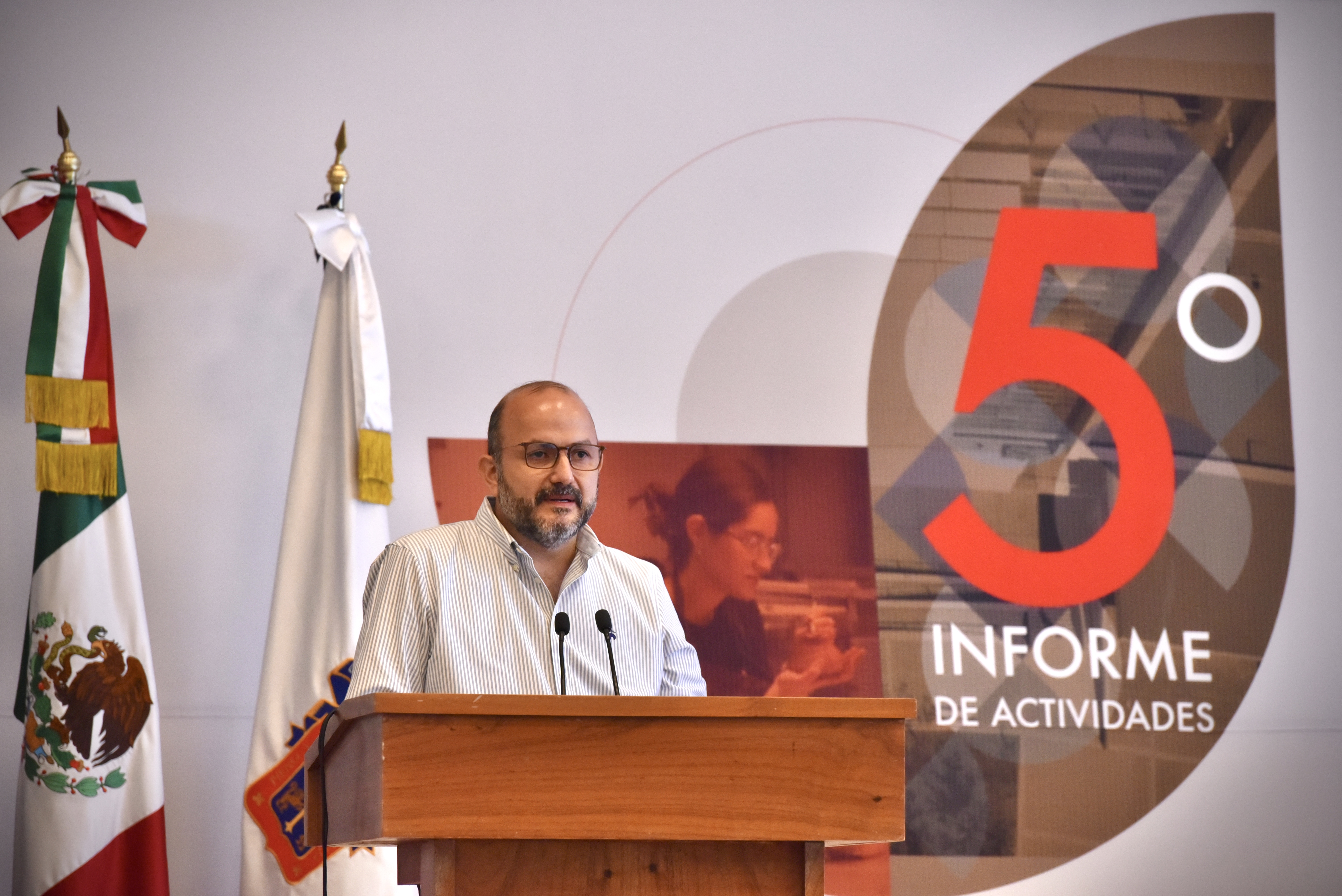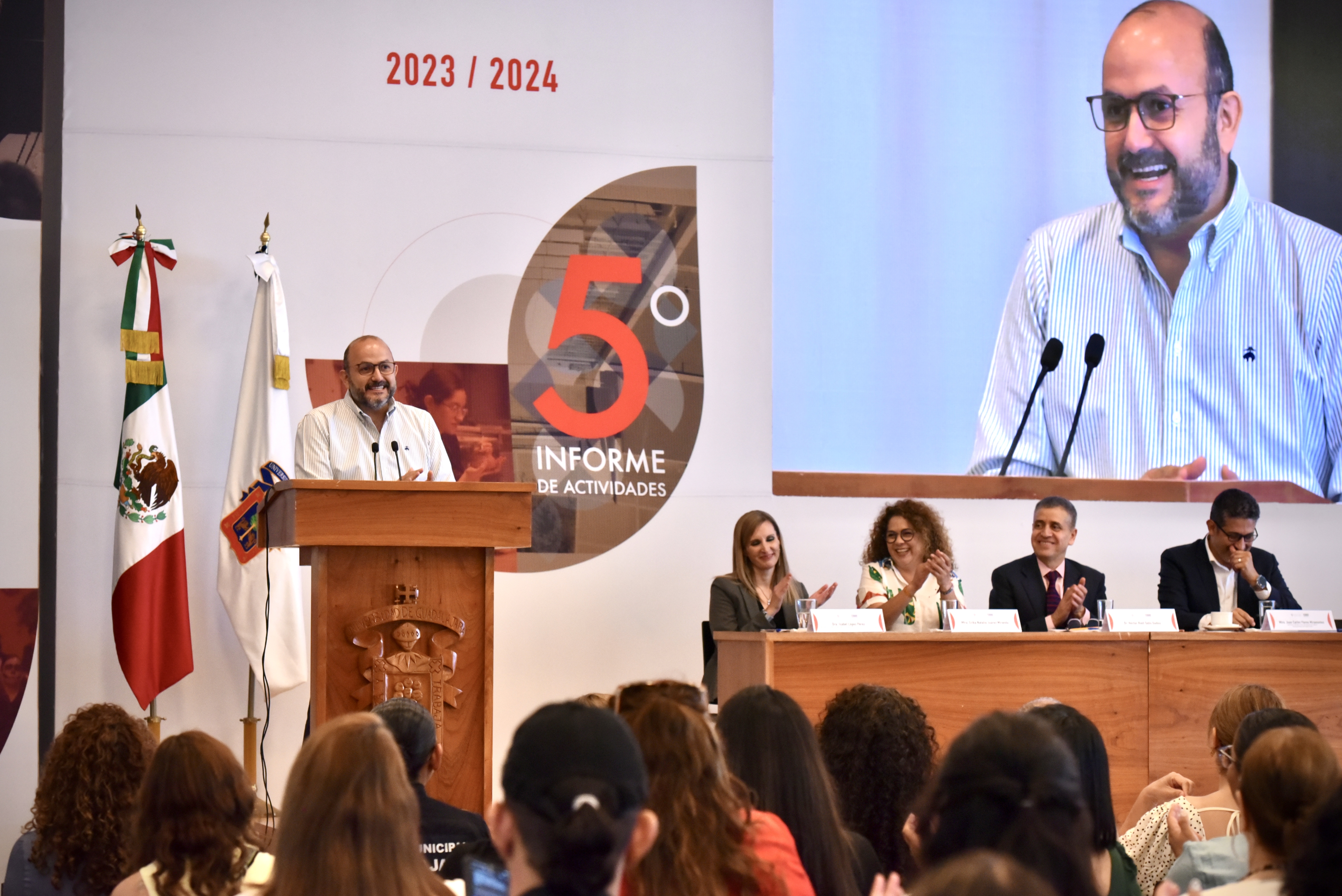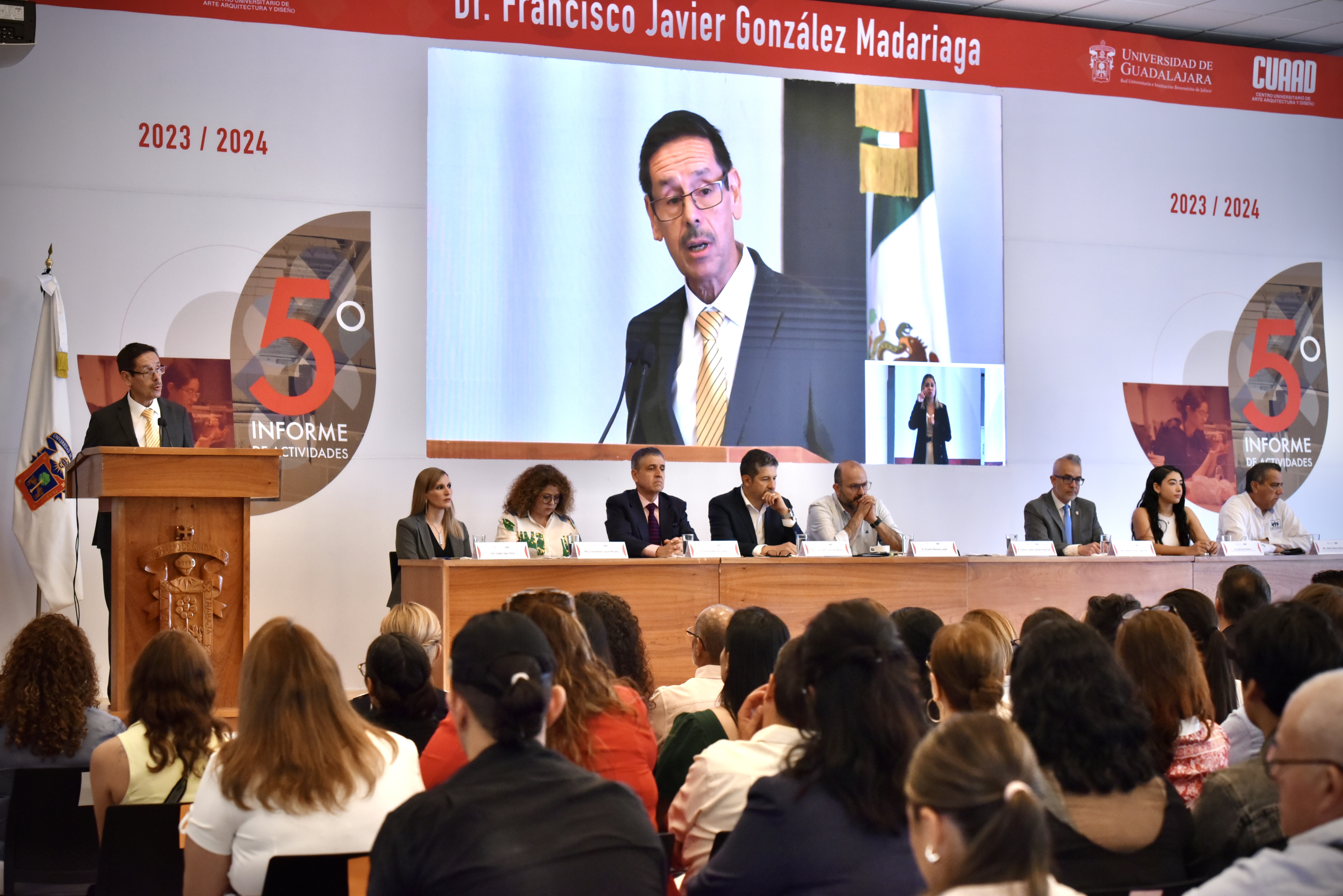 Esto lo destacó el Rector de estos planteles, doctor Francisco Javier González Madariaga, durante su quinto Informe de actividades realizado este martes en el auditorio Ignacio Díaz Morales del CUAAD Huentitán, ante miembros de la comunidad universitaria.