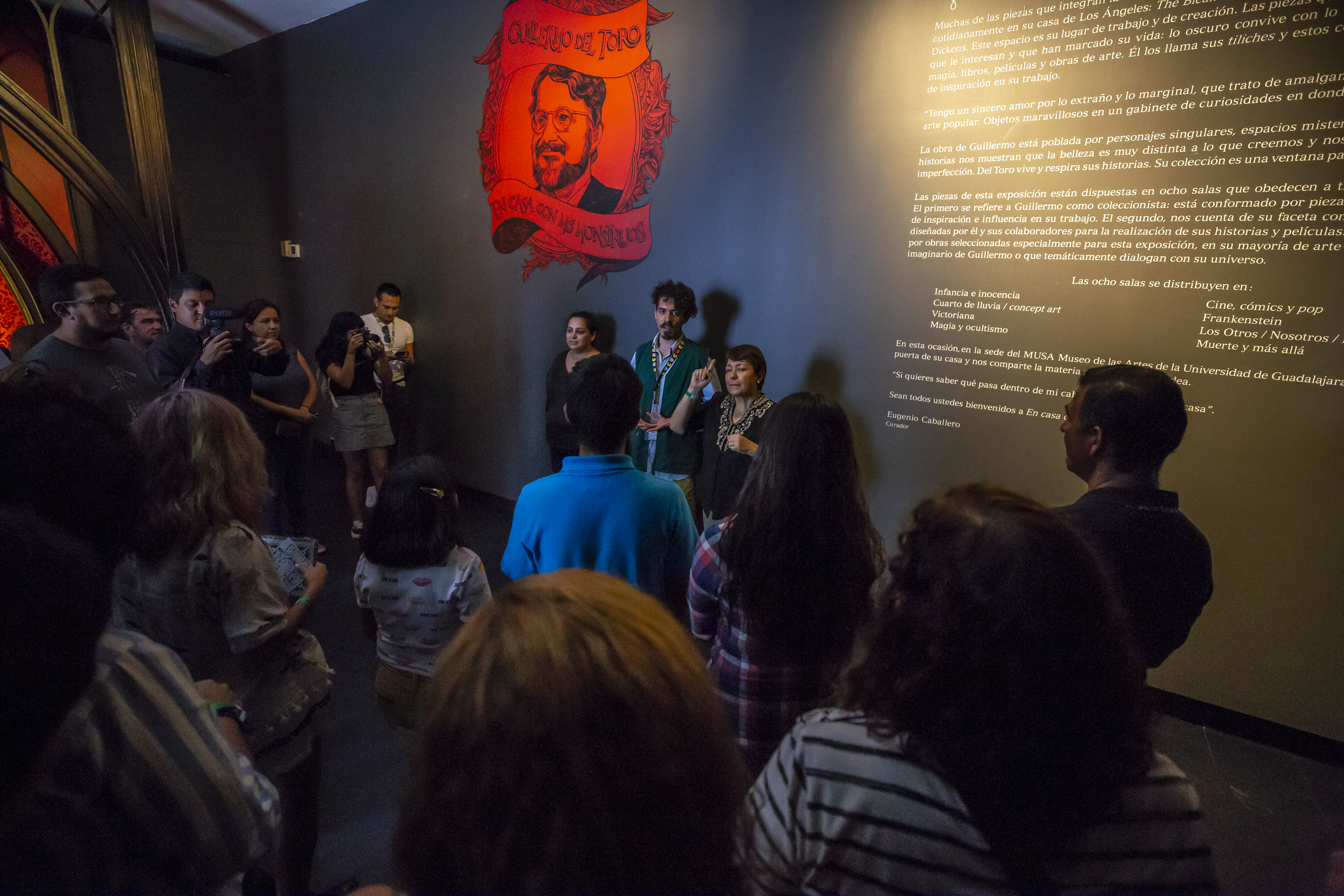 Cerca de 50 integrantes de las asociaciones civiles Educación Incluyente y Poder Oír, disfrutaron la tarde de este lunes 19 de agosto de la exposición En casa con mis monstruos, de Guillermo del Toro, en el Museo de las Artes (MUSA) de la Universidad de Guadalajara (UdeG).