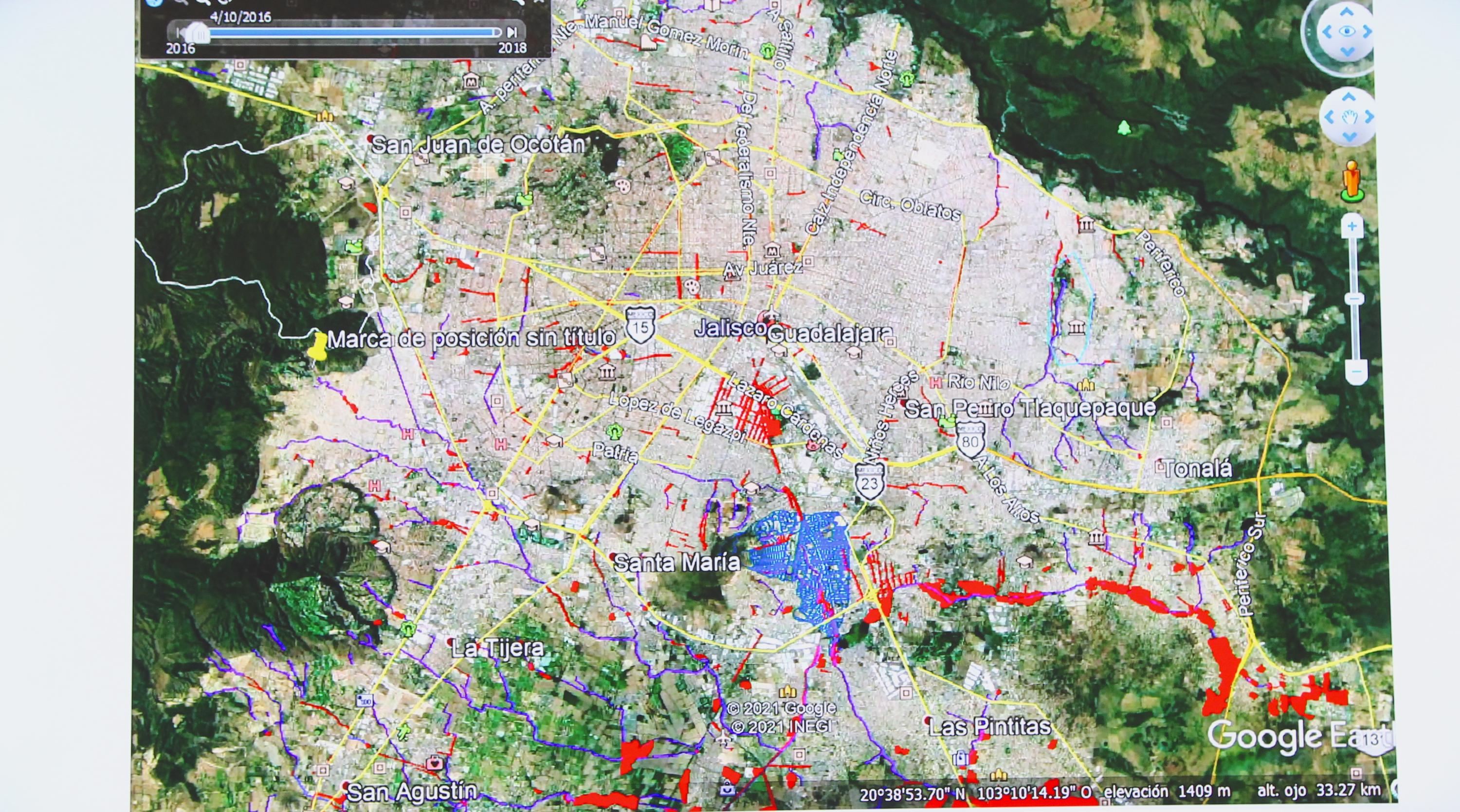 “Hemos visto un incremento considerable de las zonas que tienen nuevos registros de inundación, sobre todo en el perímetro del Bosque La Primavera, especialmente en las zonas que se están urbanizando como Santa Anita, El Garabato –cercano a Mariano Otero–, Arenales Tapatíos, y hemos encontrado que en el norte de Zapopan los nuevos desarrollos urbanos de los últimos cinco años, de la carretera de Tesistán a San Cristóbal de la Barranca, han tenido registros de inundaciones, además de los nuevos pasos a desnivel, que son los de mayor incremento de peligrosidad porque alcanzan más de dos metros de acumulación de agua, como el caso de los desniveles en Plaza Patria”, informó.