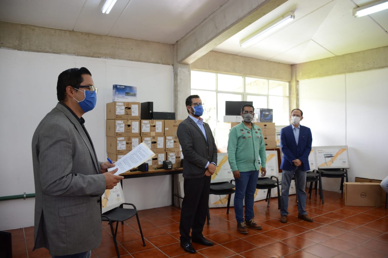 “Estamos aquí entregando estas computadoras y este mobiliario para que los jóvenes no detengan sus estudios. Se trata de diez equipos de cómputo, once mesas de trabajo, cinco reguladores, una impresora y un switch con los que vamos a arrancar de manera provisional. Es un gusto saber que ya tenemos a 20 personas de este municipio interesadas en ingresar a UDGVirtual en el calendario 2021-A”, dijo Palafox Velasco.