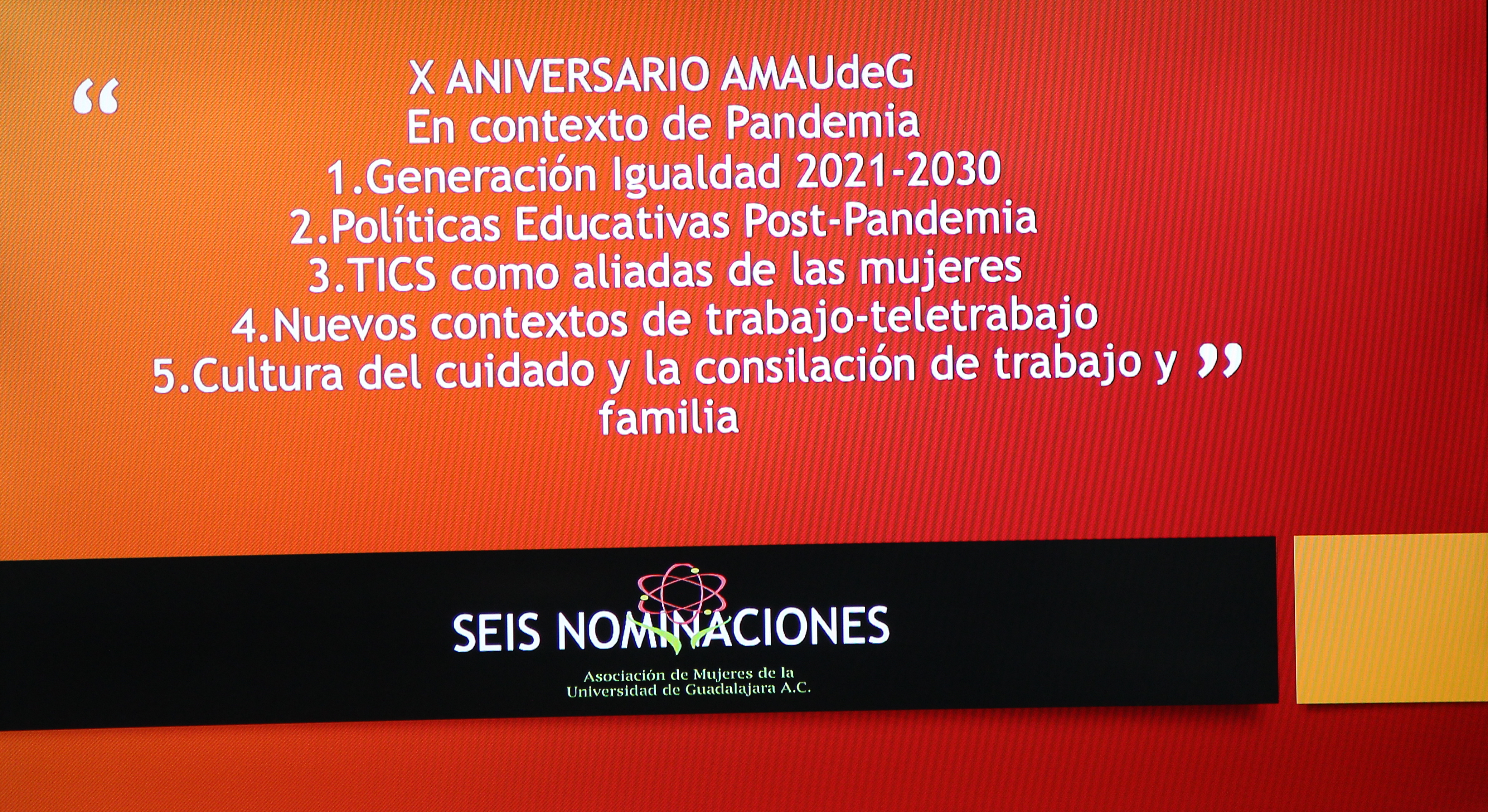 Dijo que el contexto de la pandemia ha dejado tareas como el impulso a una generación de igualdad, el replantear políticas educativas pospandemia con perspectiva de igualdad de género, el cambio de paradigma en la forma de trabajar en la vida académica, estudiantil y administrativa a través del teletrabajo, y la cultura del cuidado y la conciliación de trabajo y familia.