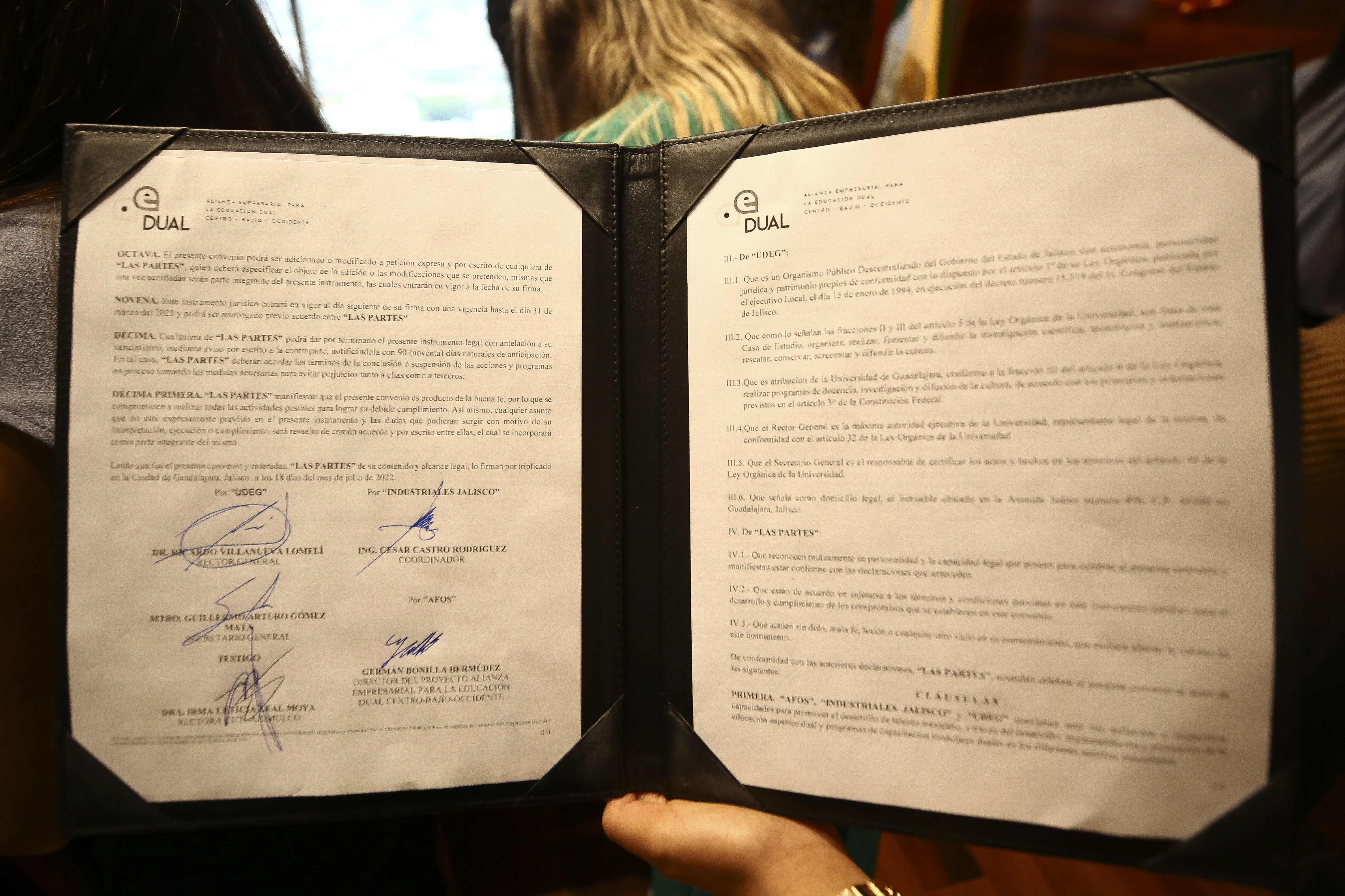 La Universidad de Guadalajara (UdeG) y la Alianza Empresarial para la Educación Dual Centro, Bajío, Occidente, firmaron este lunes un acuerdo de colaboración que viene a formalizar los trabajos que desde 2020 realizan de forma conjunta.