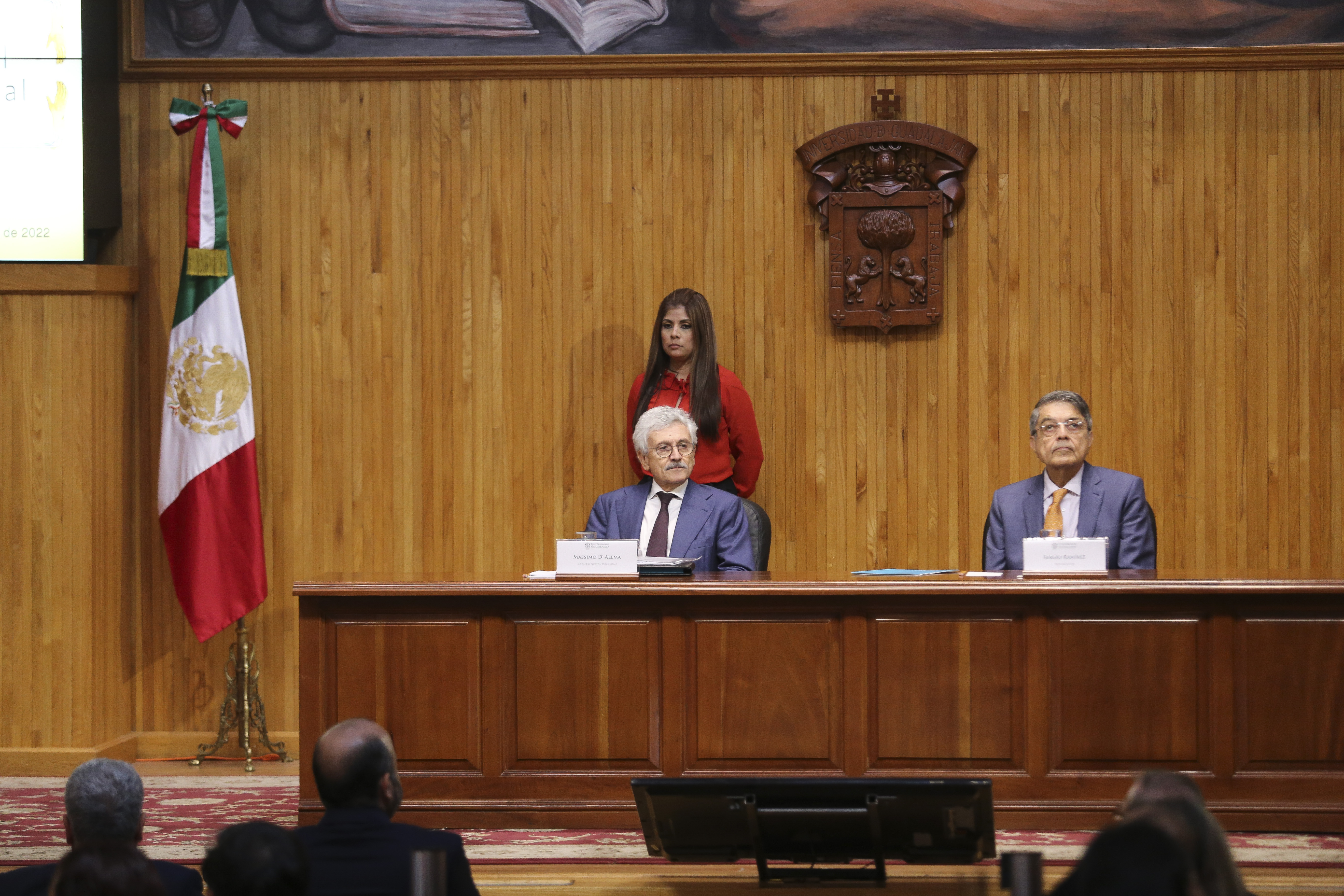 En la conferencia estuvieron presentes Silvia Lemus, viuda del escritor Carlos Fuentes, auspiciador de la cátedra y el político mexicano Porfirio Muñoz Ledo, Doctor Honoris causa por esta Casa de Estudio.