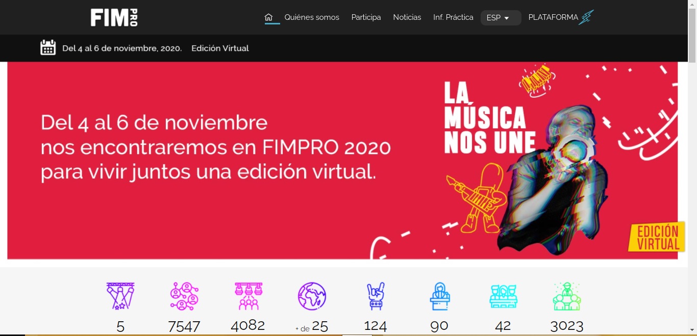 El intercambio de ideas sobre la industria musical ahora será a distancia. La sexta edición de la Feria Internacional de la Música para Profesionales (FIMPro) “La música nos une", se realizará de forma virtual del 4 al 6 de noviembre, con todos sus contenidos abiertos para profesionales, promotores, fanáticos y público en general.