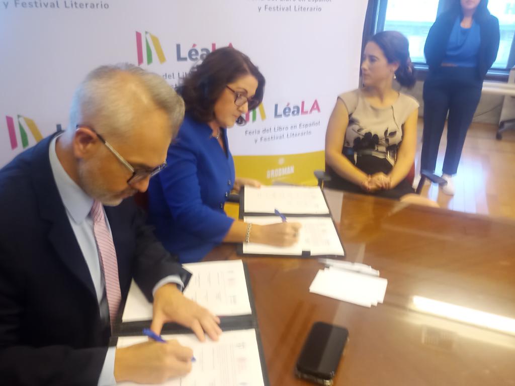 El acuerdo fue firmado durante las actividades del Foro de las Ideas en el Marco de la Feria del Libro en español y Festival Literario LéaLA, que se realiza en la Plaza de Cultura y Artes de la ciudad de Los Ángeles, California.