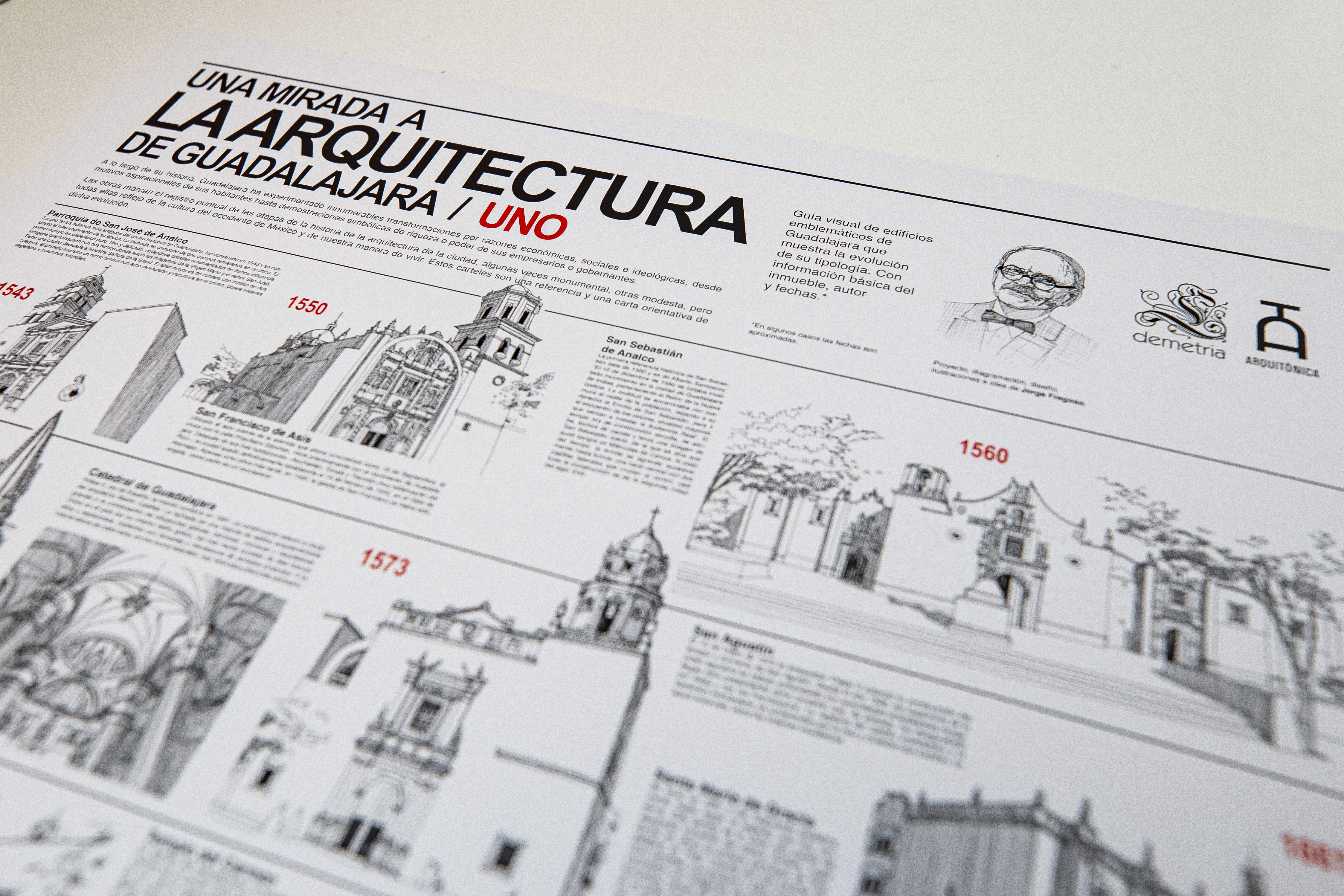 “También viene quién los hizo, cuándo los hicieron, en algunos casos también están las imágenes ilustradas de los autores, ya que muchas veces no se conoce quiénes fueron los creadores, como es el caso del Teatro Degollado (Jacobo Gálvez) o Los Arcos de Guadalajara (Aurelio Aceves)”, indica.