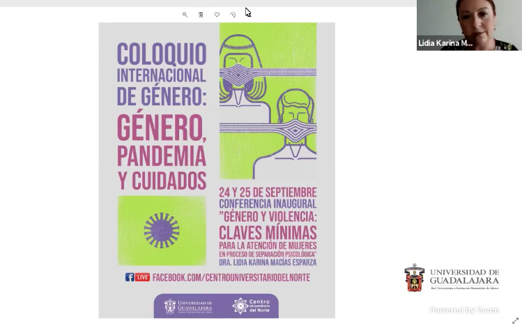 Lo anterior, durante su participación en el segundo Coloquio Internacional de Género, que se desarrolla bajo la temática “Género, pandemia y cuidados”, organizado por el Centro Universitario del Norte (CUNorte), e inaugurado este 24 de septiembre por el Rector de dicho plantel, maestro Uriel Nuño Gutiérrez.