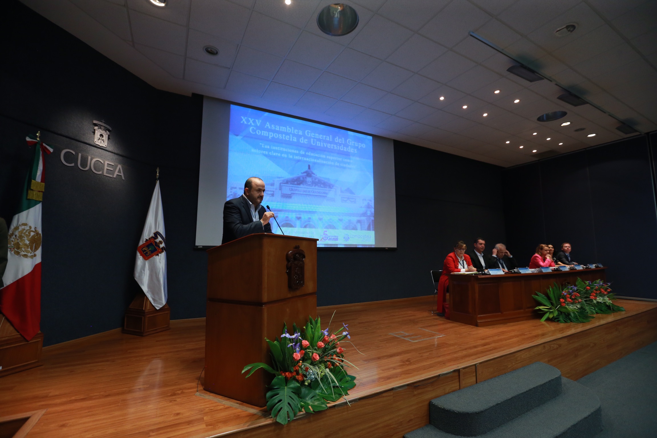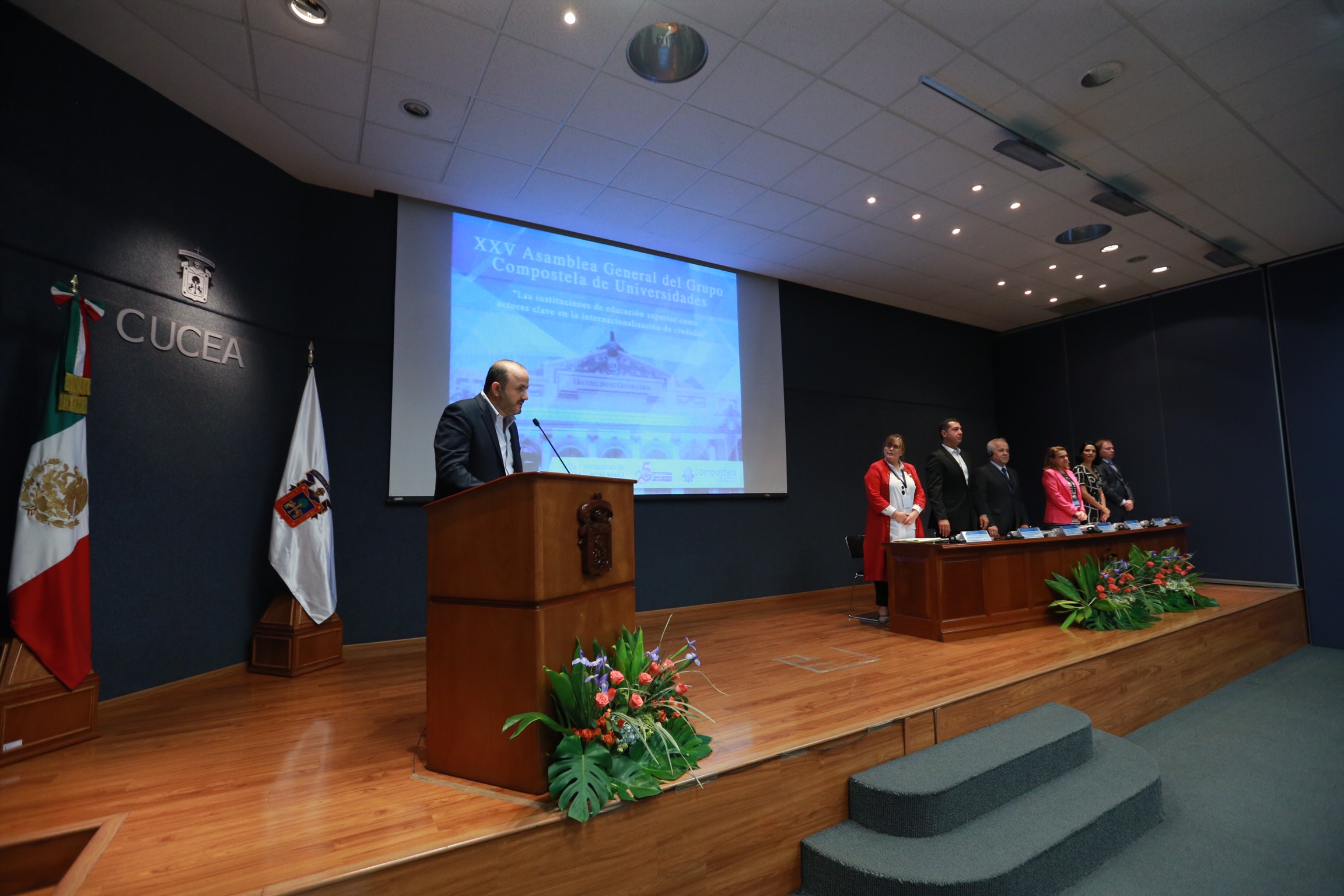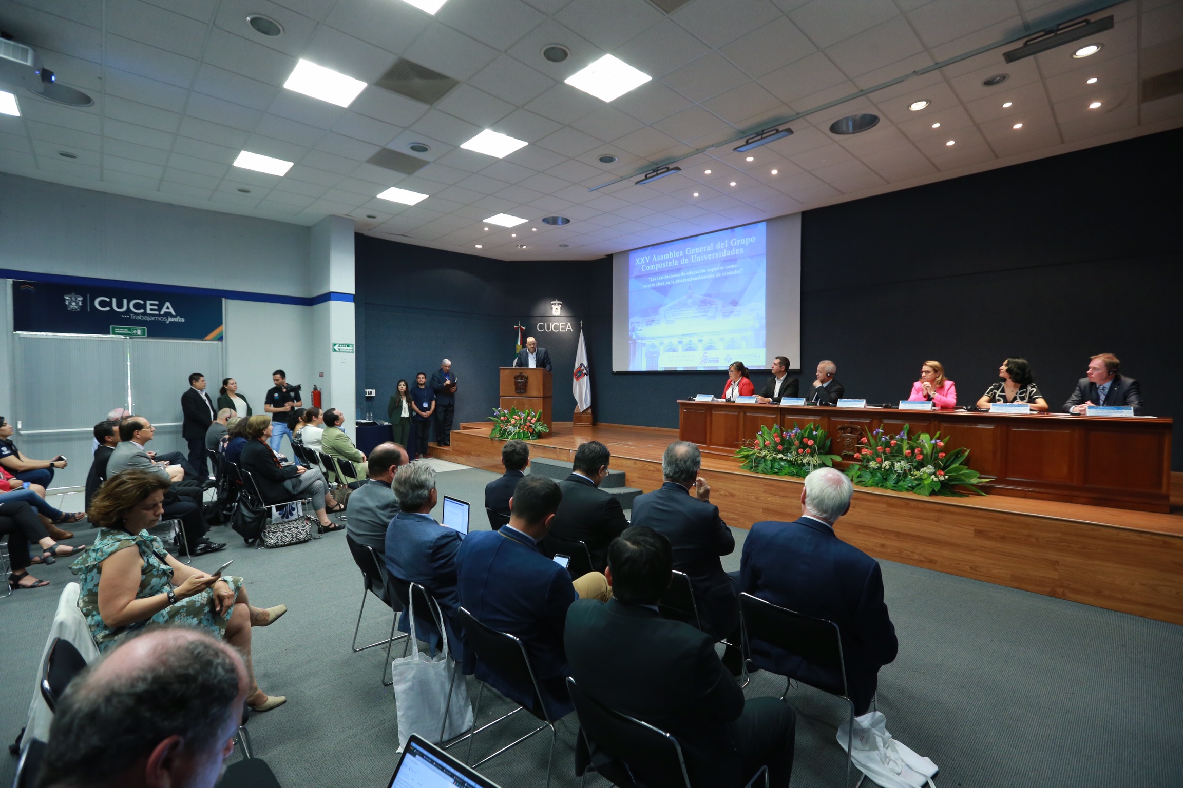 Con el fin de propiciar la reflexión sobre el rol que desempeñan las instituciones de educación superior en la internalización de las ciudades, y sobre la cooperación y movilidad académica, fue inaugurada esta tarde la XXV Asamblea General del Grupo Compostela de Universidades por el Rector General de la Universidad de Guadalajara (UdeG), doctor Ricardo Villanueva Lomelí, en el Auditorio Central del Centro Universitario de Ciencias Económico Administrativas (CUCEA), de la Universidad de Guadalajara (UdeG).