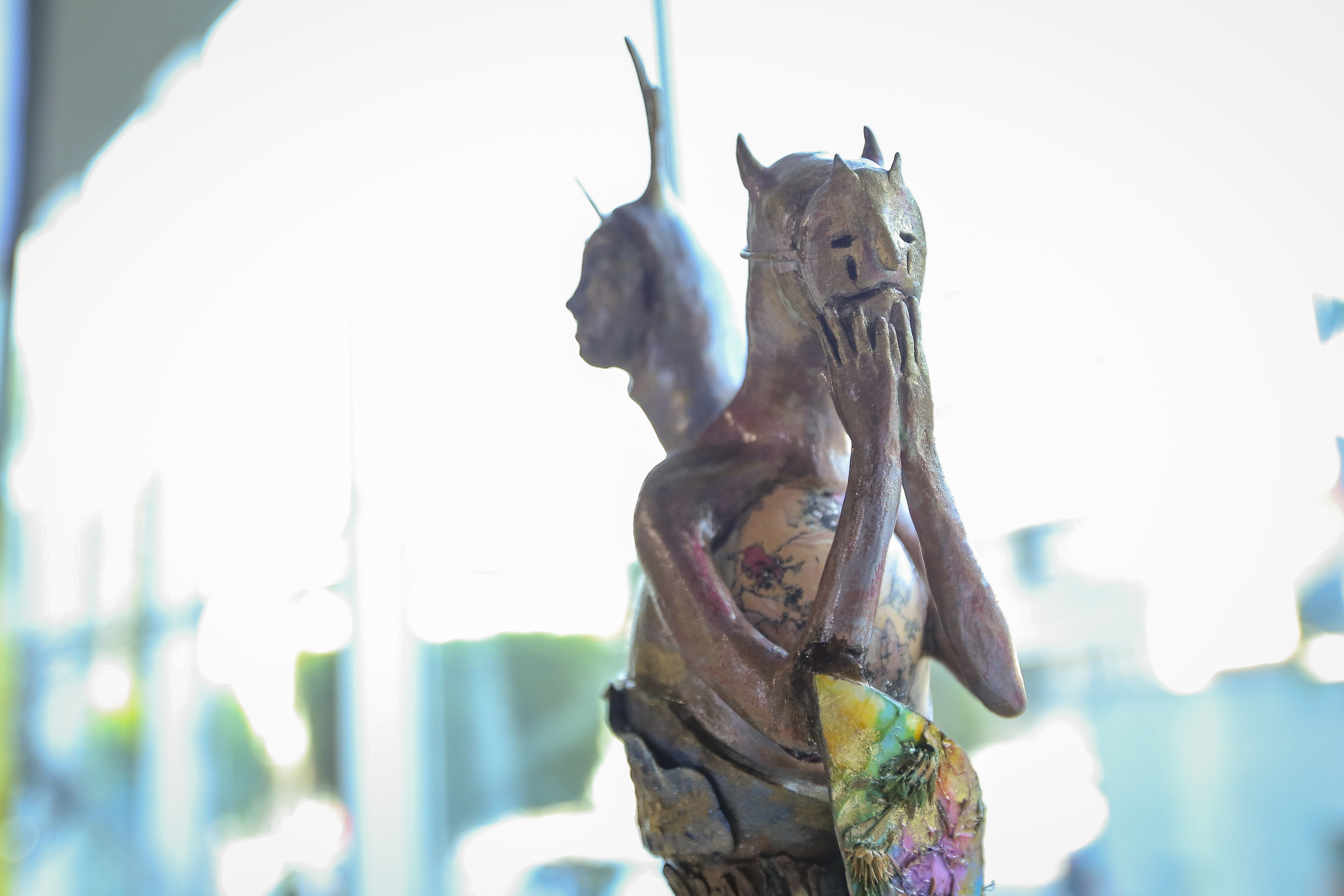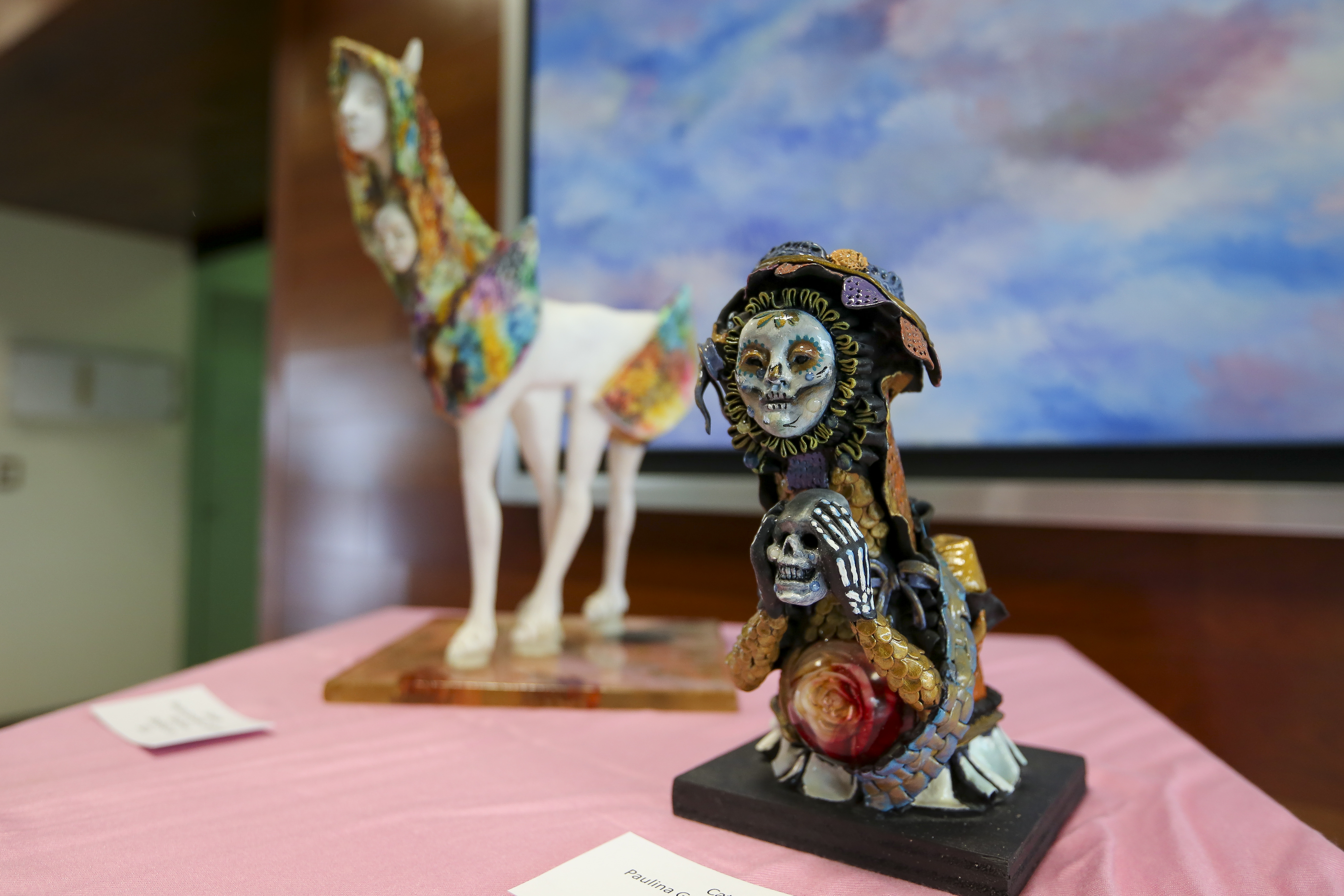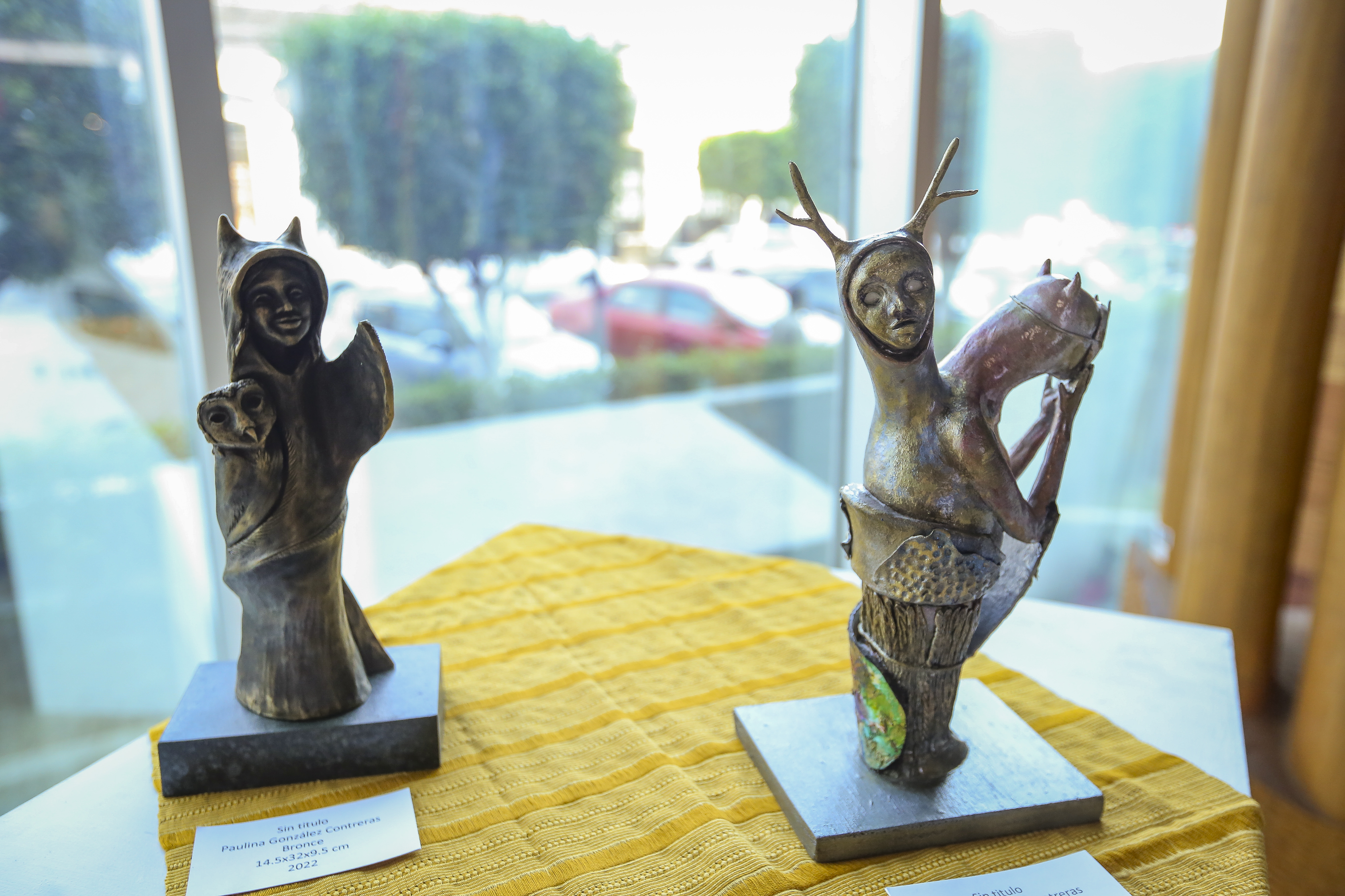 La escultora Paulina González Contreras, egresada de la Escuela de Artes del CUAAD, exhibió piezas de técnica mixta, porcelana fría y bronce como Catrina, Caballo, Sirena y cuatro piezas antropomorfas sin título, una muestra de su objetivo como artista.