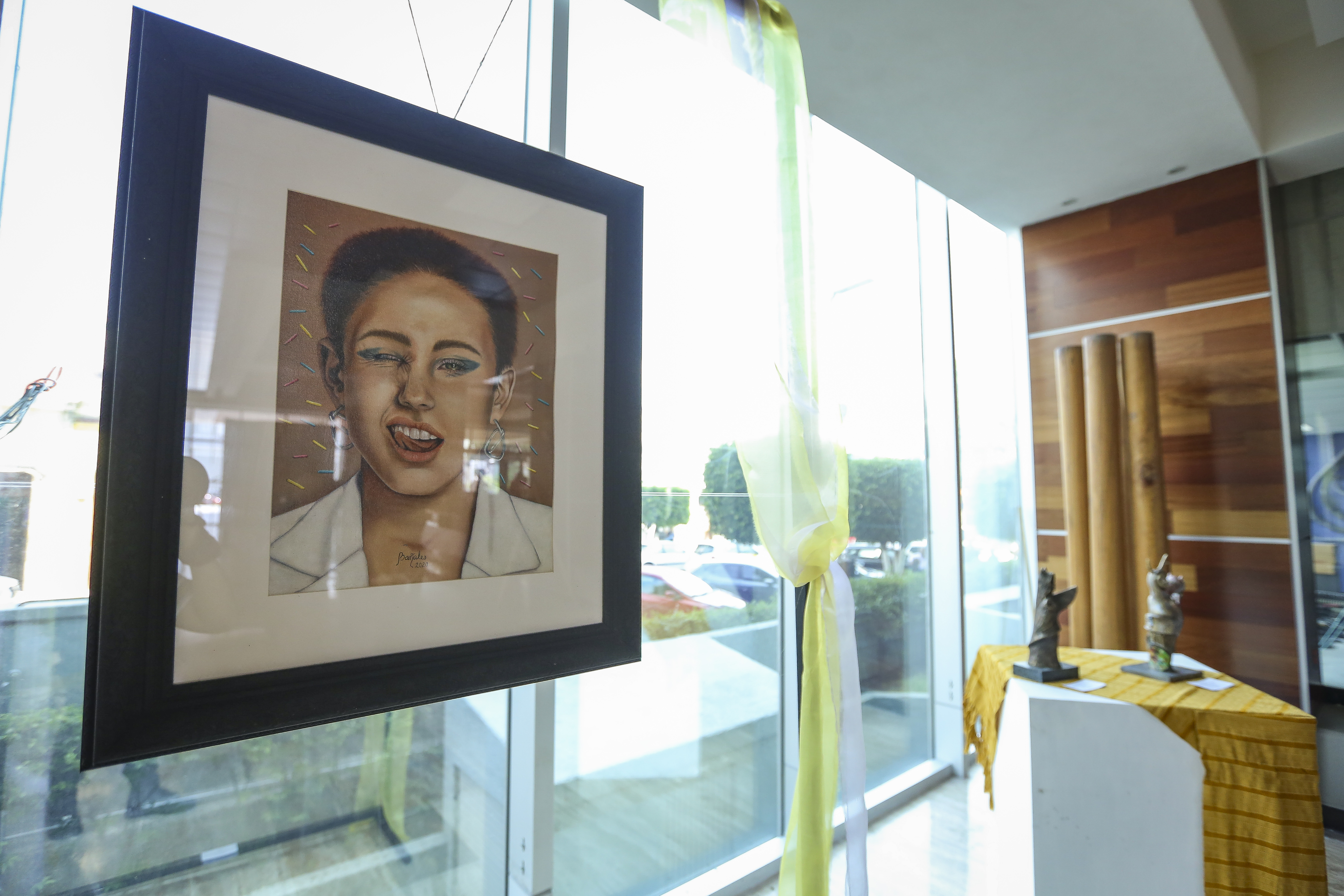 El lobby del edificio de Rectoría General de la UdeG muestra piezas de pintura y escultura de universitarios en la exposición Una ventana a tus sueños, propuesta que reúne las ilusiones, fantasías y pesares de las y los artistas universitarios.