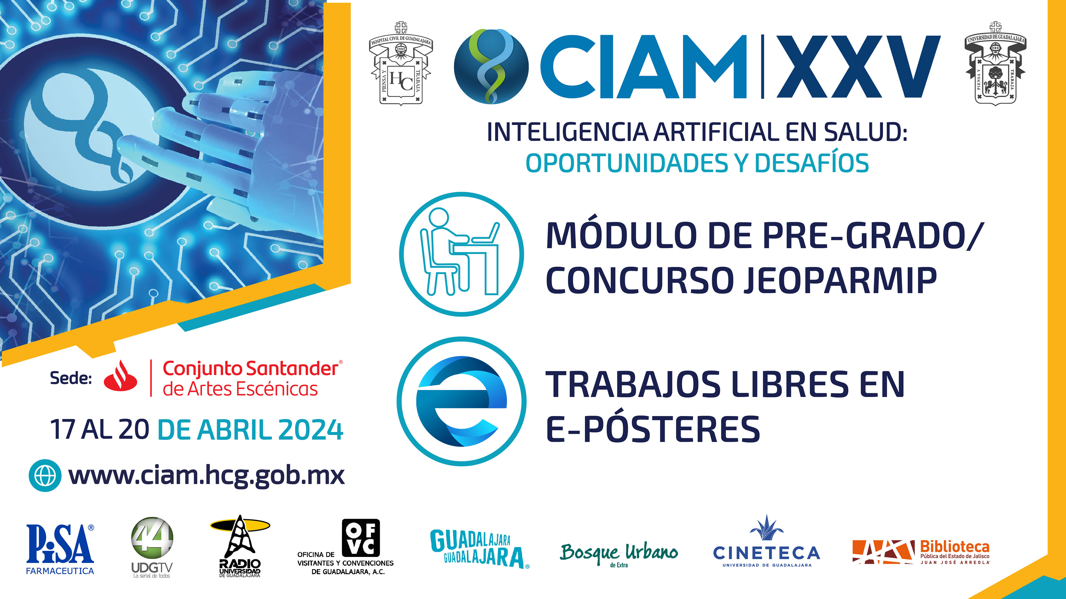 Animó a estudiantes y profesionales del país a inscribirse al CIAM 2024 y a los diversos concursos que se estarán realizando en el Conjunto Santander de Artes Escénicas (CSAE), del 17 al 20 de abril. Las inscripciones, así como el envío de resúmenes para formar parte del concurso de pósteres, pueden hacer en el sitio oficial del CIAM, https://ciam.hcg.gob.mx/