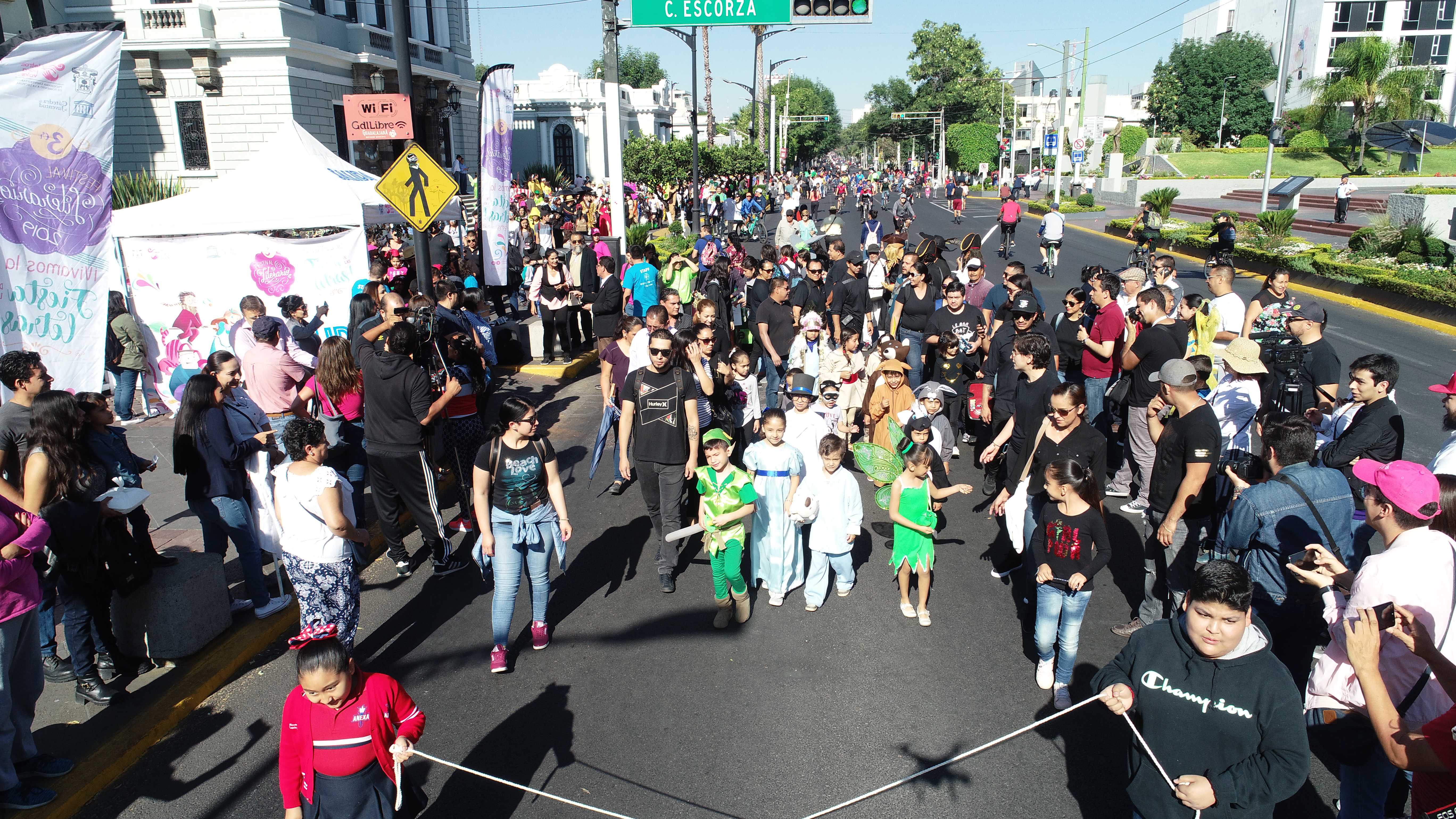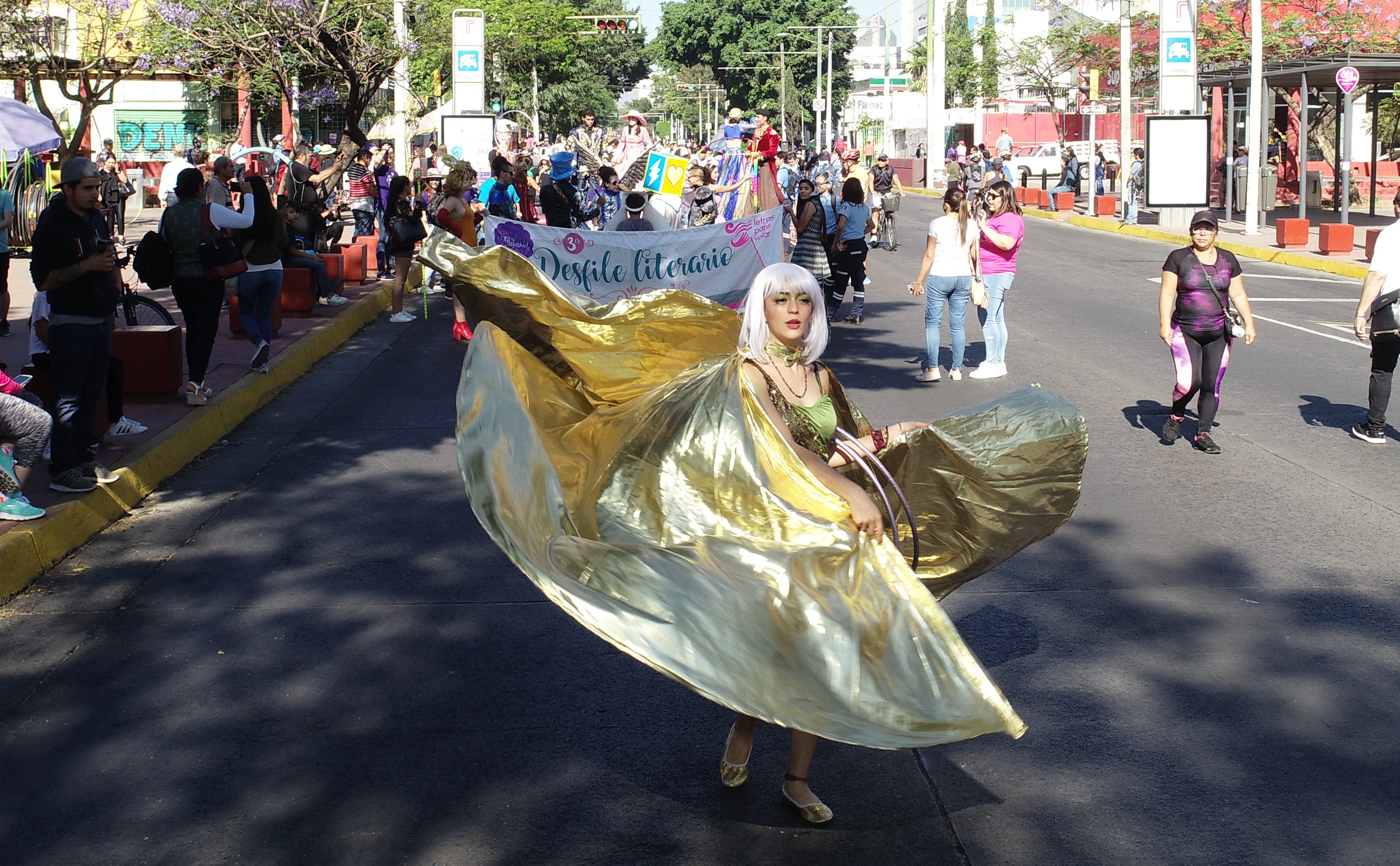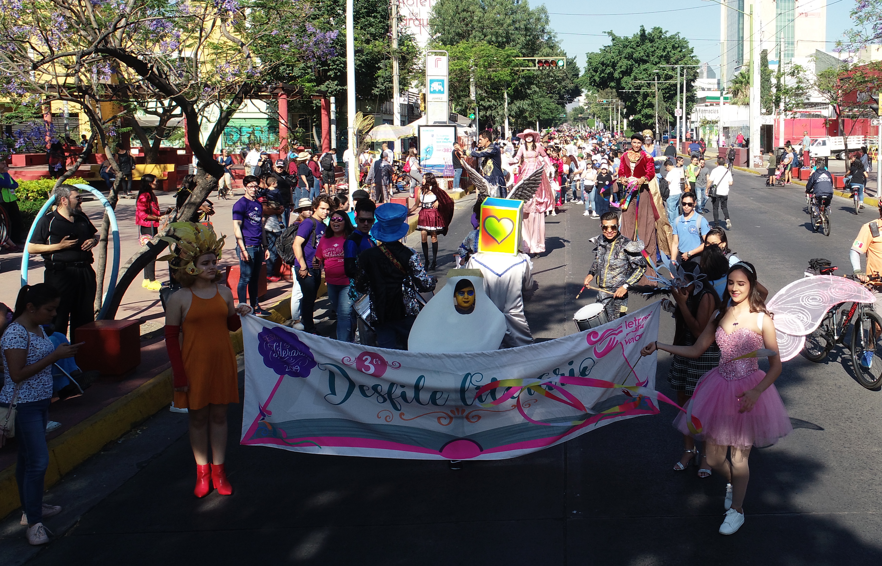 Con música, disfraces multicolores, 32 carros alegóricos y mucha imaginación, cientos de estudiantes de educación media superior y superior de la Universidad de Guadalajara y de otras instituciones se dieron cita en el Museo de las Artes, para participar en el desfile literario organizado este domingo por el Programa de Fomento a la lectura “Letras para Volar” de esta Casa de Estudio.