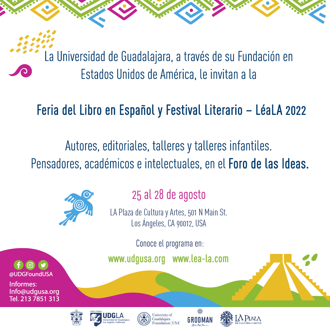 LéaLA es un proyecto que organiza la University of Guadalajara Foundation USA, con el apoyo del Legado Grodman, en colaboración con el Consulado General de México en Los Ángeles y la Asociación de Egresados de la Universidad de Guadalajara en Los Ángeles, así como varias instituciones públicas y privadas de Estados Unidos y México.