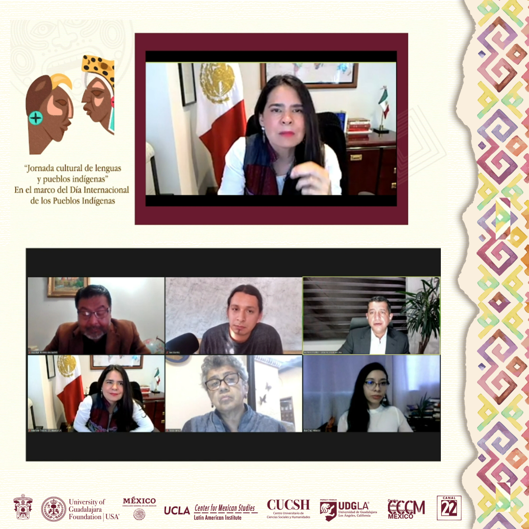 El seminario se realiza de forma virtual en el marco del Día Internacional de los Pueblos Indígenas y es organizado por la Universidad de Guadalajara, con el apoyo del Centro Universitario de Ciencias Sociales y Humanidades (CUCSH) y la University Of Guadalajara Foundation, en colaboración con el Consulado General de México en Los Ángeles, la Universidad de California en Los Ángeles (UCLA) , el Canal 22 y el colectivo Tlahtoltapazolli.