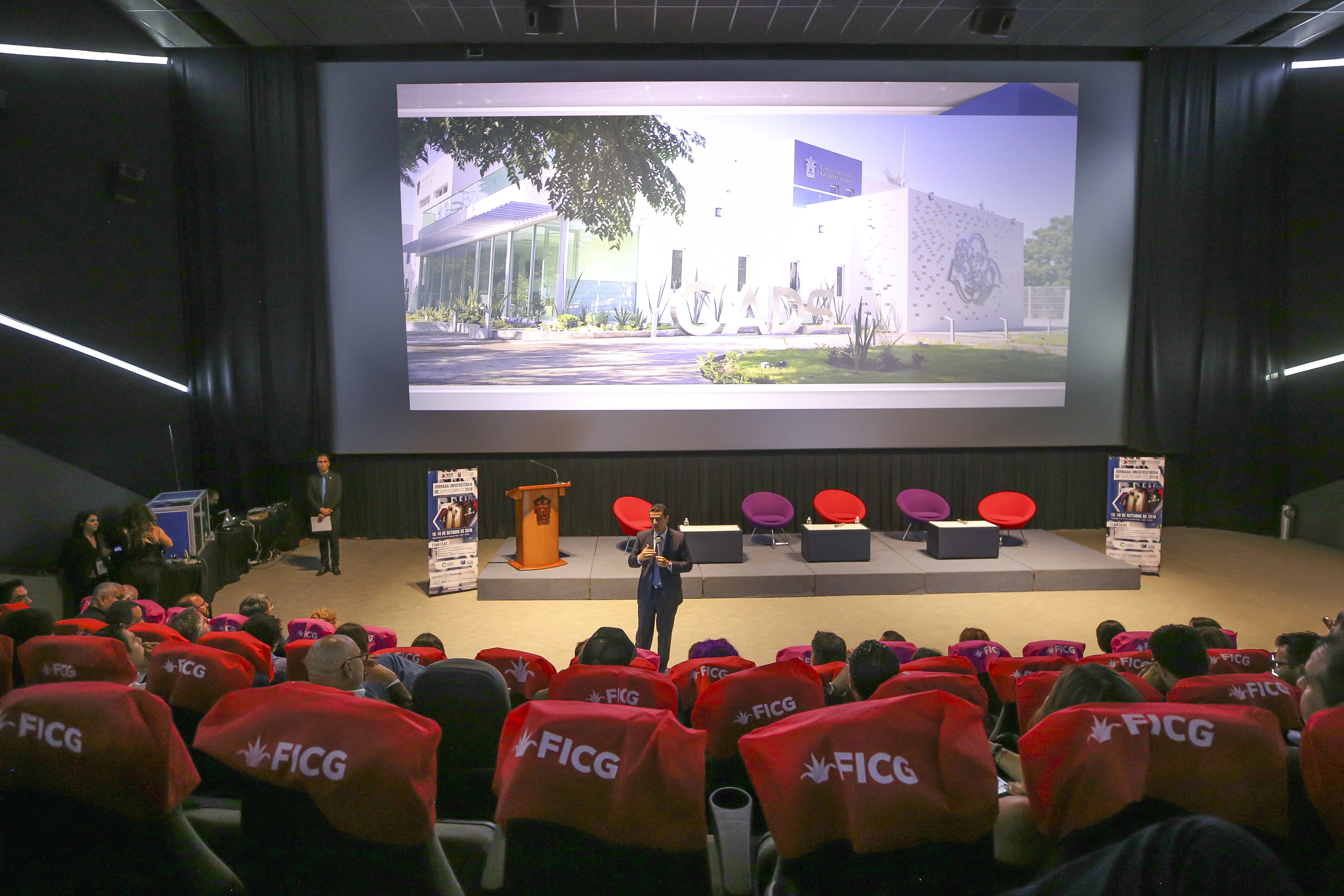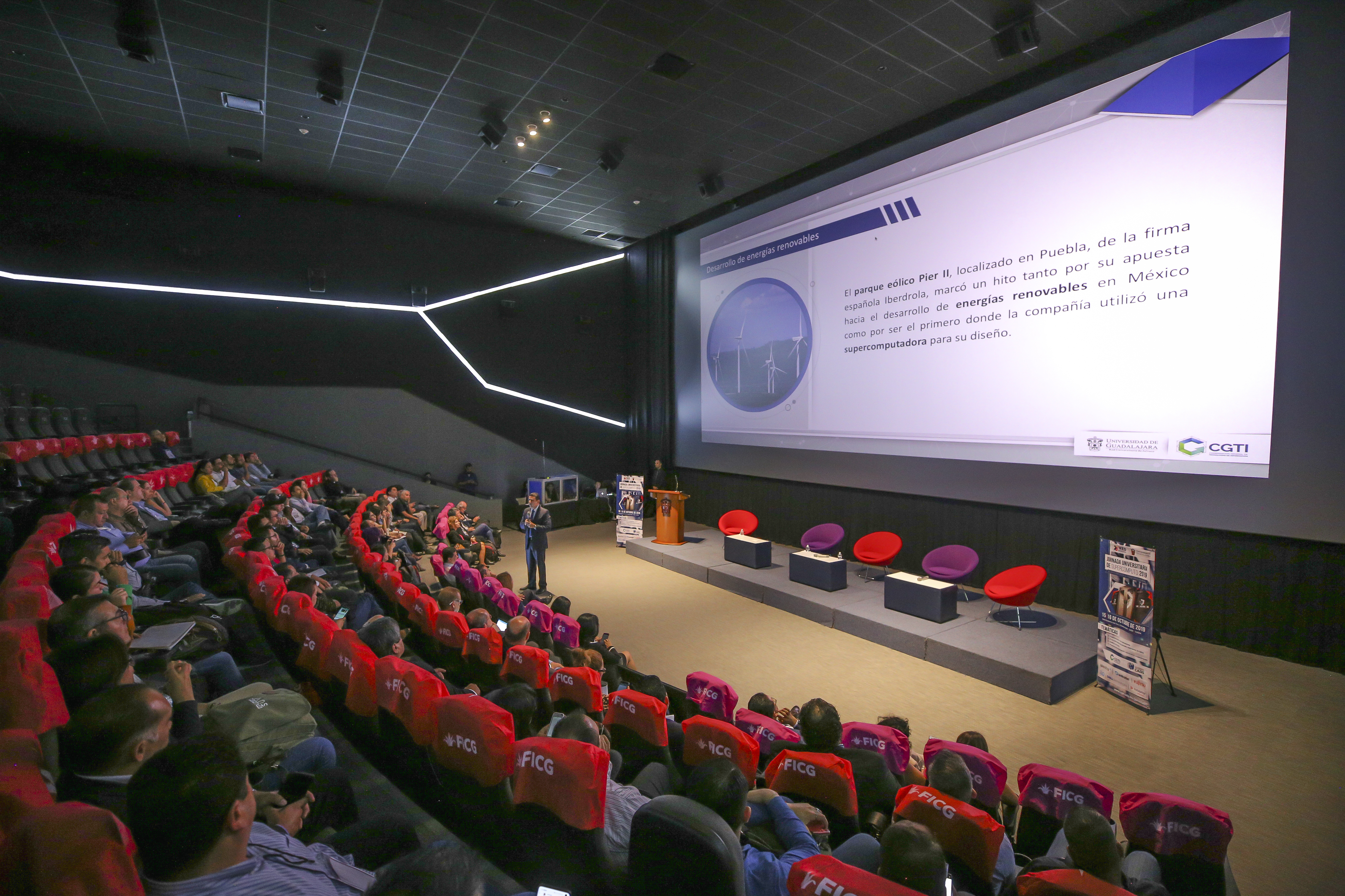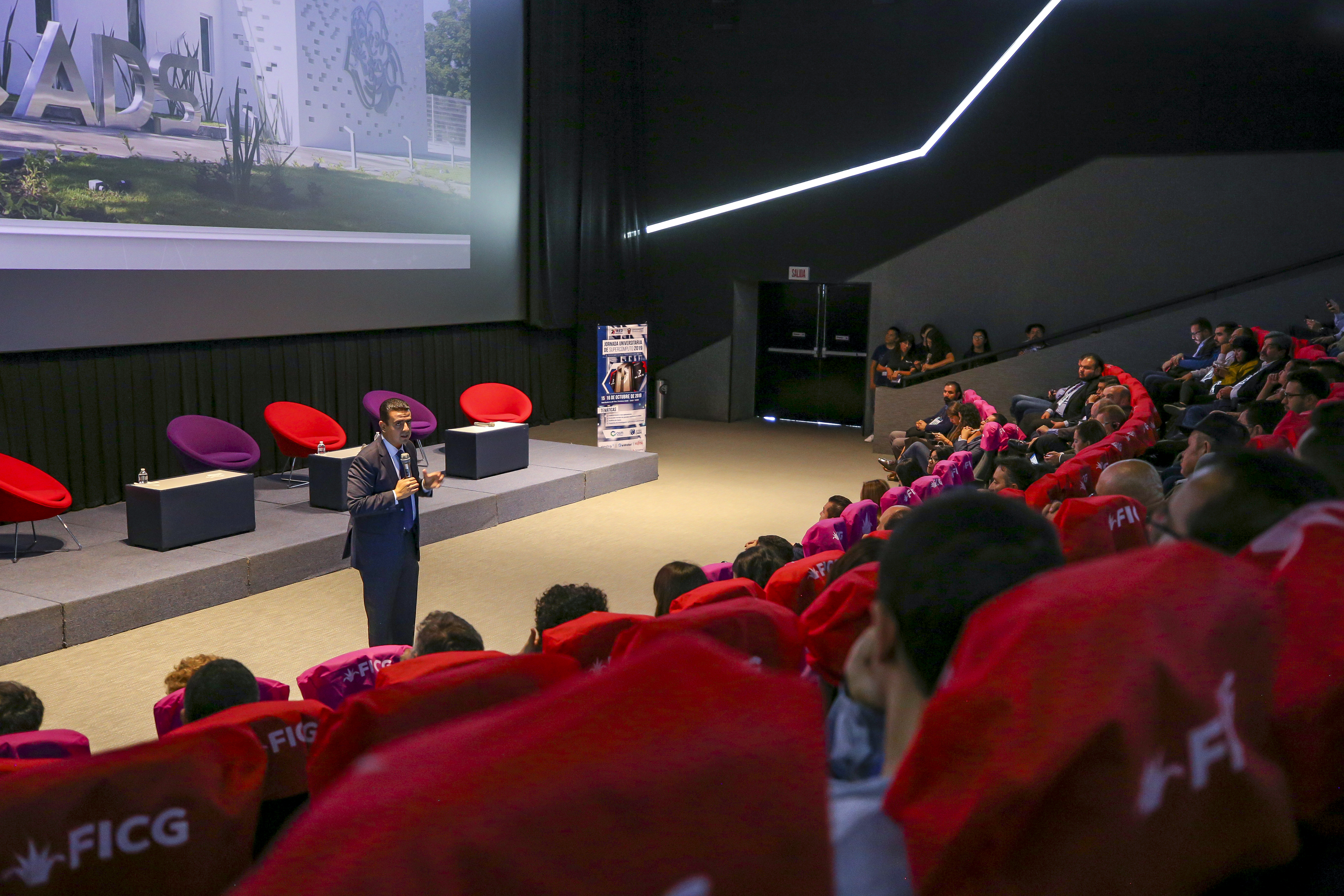 El titular de la Coordinación General de Tecnologías de la Información (CGTI), doctor Luis Alberto Gutiérrez Díaz de León, presentó este proyecto ante la comunidad científica que se dio cita a la Jornada Universitaria de Supercómputo 2019, que tiene como sede la Sala Guillermo del Toro de la Cineteca FICG, de la Universidad de Guadalajara.
