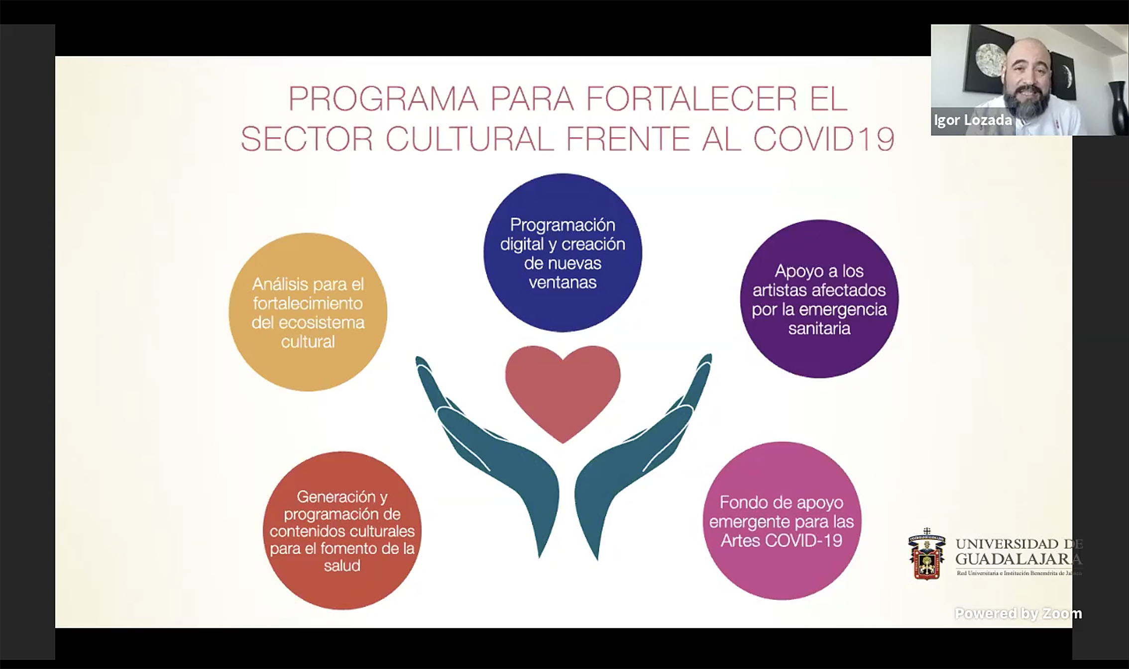 El Coordinador General de Extensión y Difusión Cultural de la UdeG, maestro Ángel Igor Lozada Rivera Melo, declaró que tras el encierro por la pandemia en marzo del año pasado, el sector cultural entendió la necesidad de hacer comunidad para generar proyectos y apoyar a quienes se habían quedado sin trabajo.
