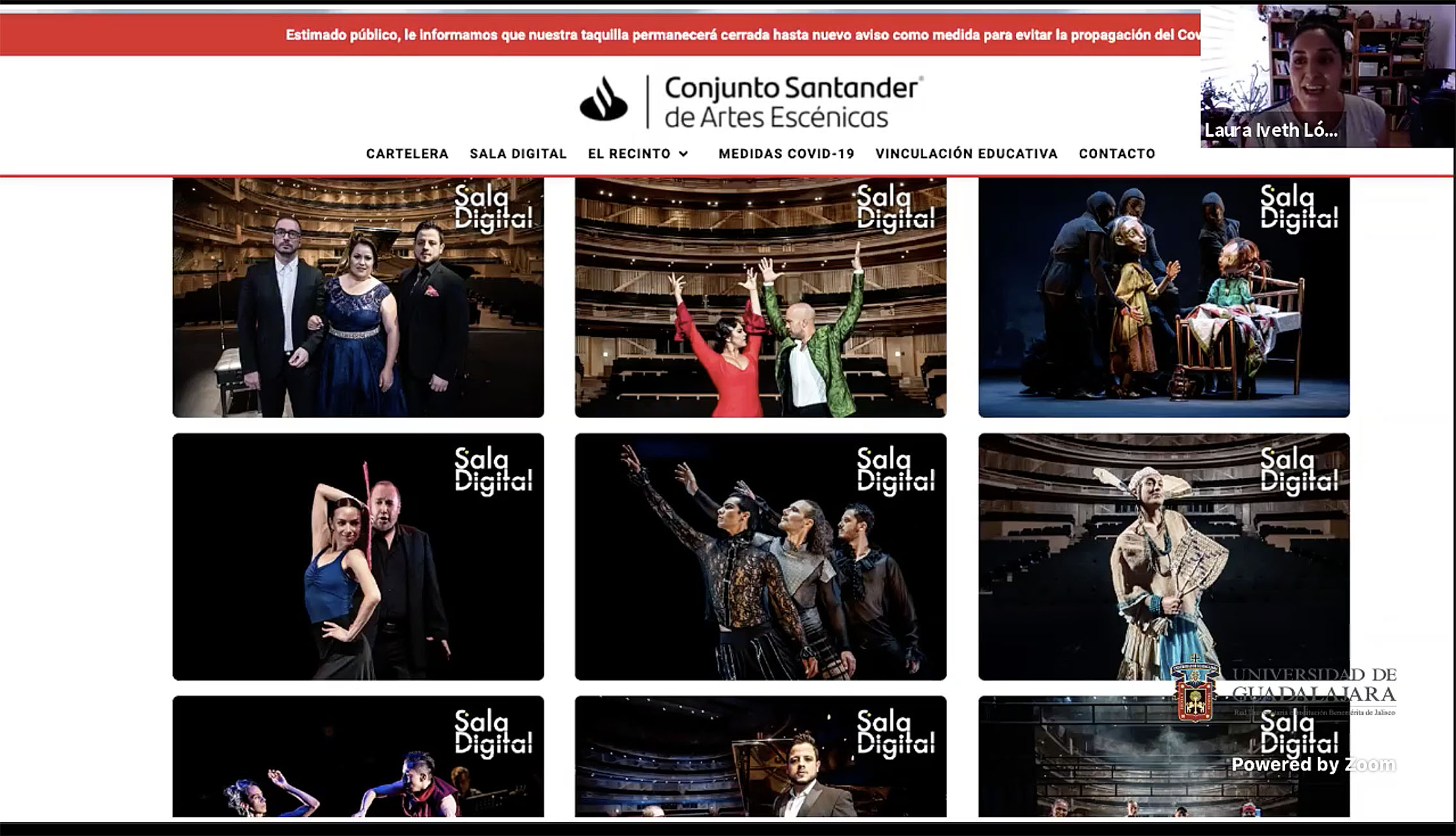 “La sala digital es una consecuencia de Cultura UDG on demand, se logró en ese momento no dar incentivos inmediatos porque vimos que el peor escenario es que nos viniéramos a diciembre de este año, sabíamos que una respuesta inmediata no sería de ayuda para nada, y de ahí surge un modelo con una estructura y metodología donde se planeó acercar a los más dispuestos a este tipo de experiencias digitales, que no está para recobrar dinero en el streaming sino para generar economía, que fue a lo que nos avocamos”, explicó.