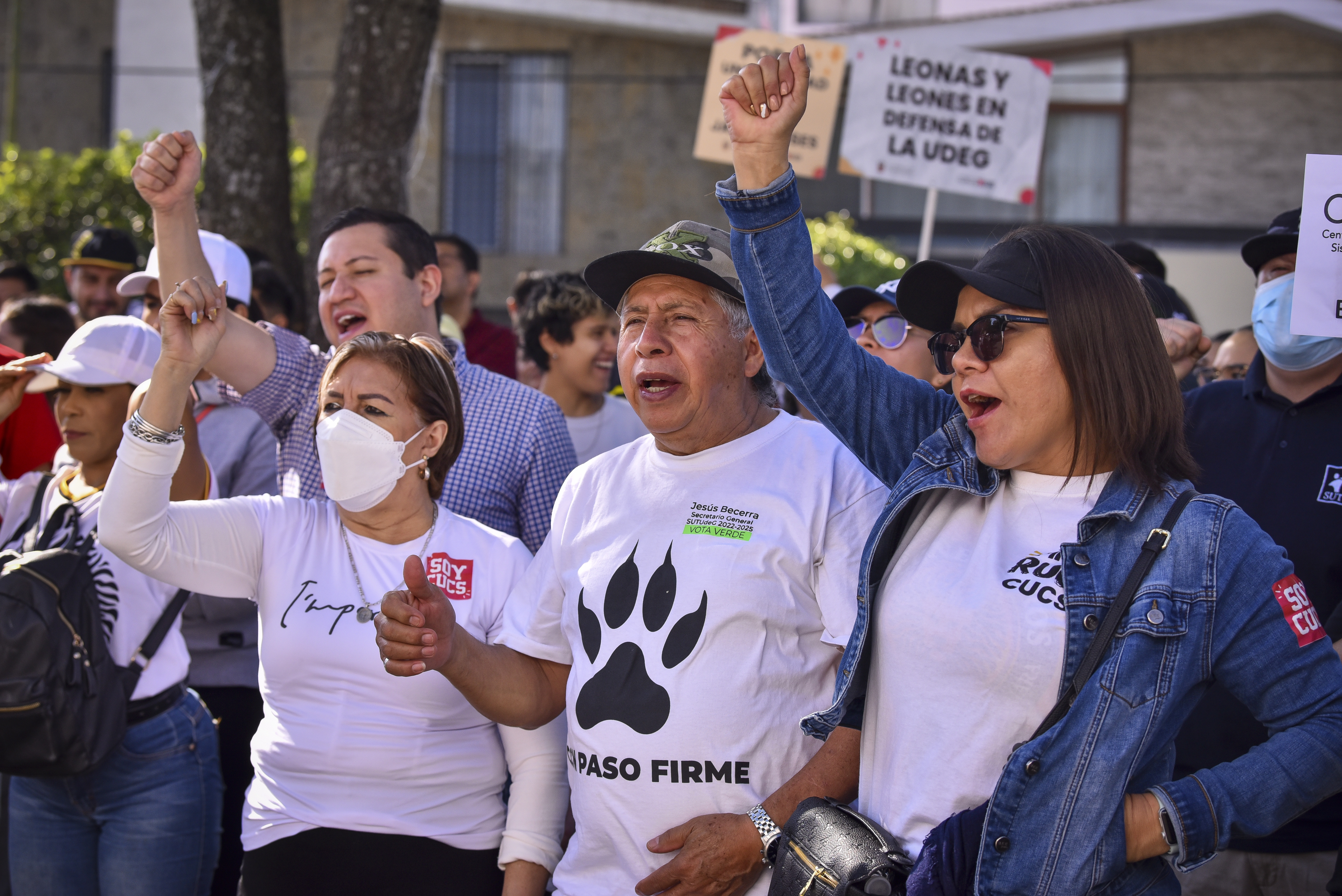 “El gobernador no nos ha dado más de lo que tiene la obligación por ley. Miente y nos trata de engañar al decir que nos ha dado 304 millones para el incremento salarial; no es verdad, para 2023 no se sabe de cuánto va a ser el tope salarial para el incremento. Venimos a defender lo que le corresponde a la universidad, el derecho, la legalidad; a decirle a Enrique Alfaro que deje de mentir y que deje de ser un hombre que no respeta la ley”, aseguró.