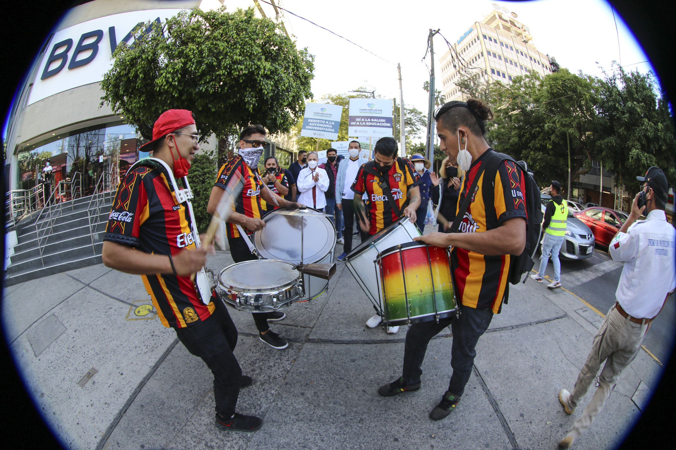 La marcha fue ambientada por ritmos brasileños, tambores, un platillo y una matraca, así como consignas en favor de la educación y la salud, ya que los universitarios están en favor de la construcción del MCA y del Hospital Civil de Oriente (HCO).