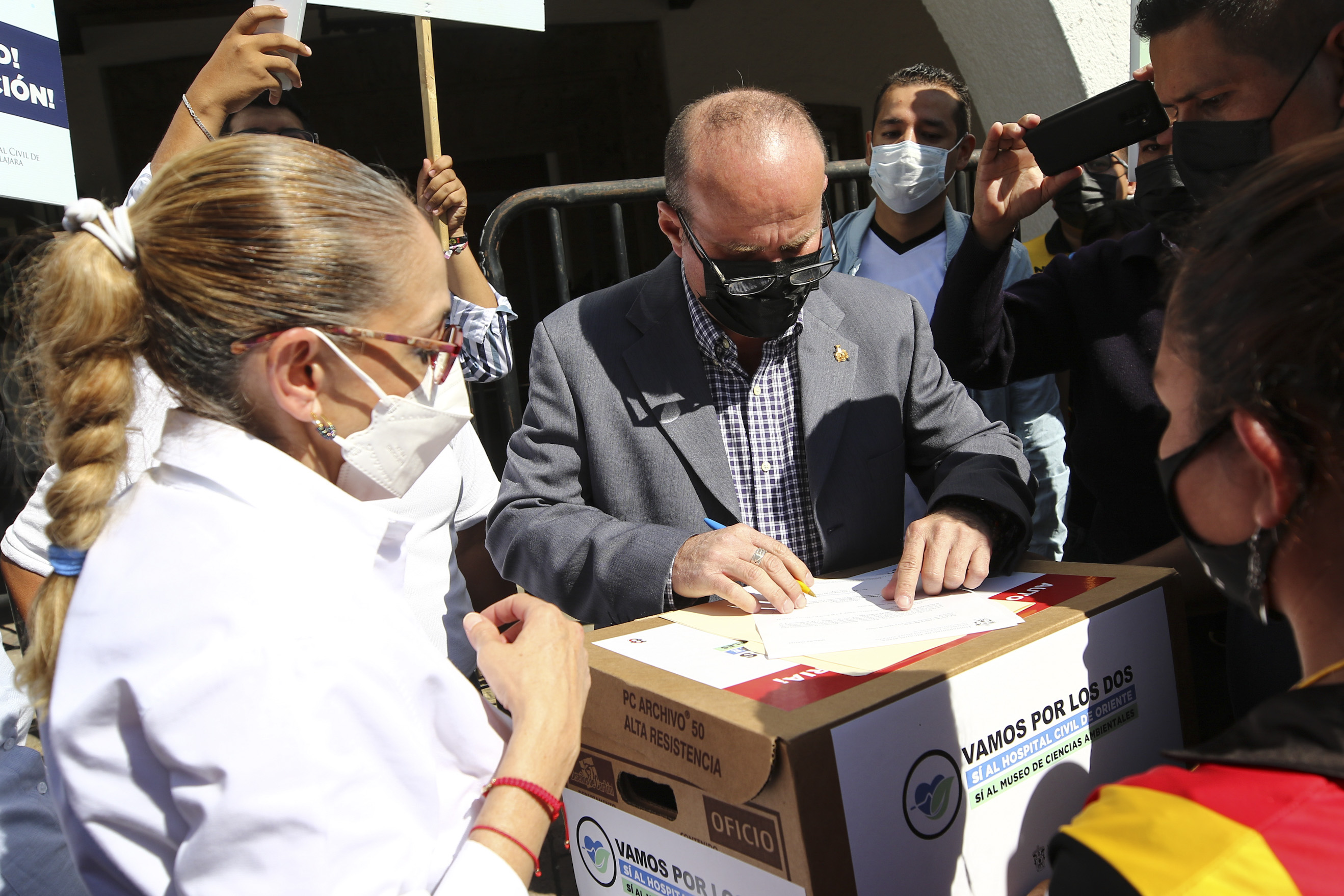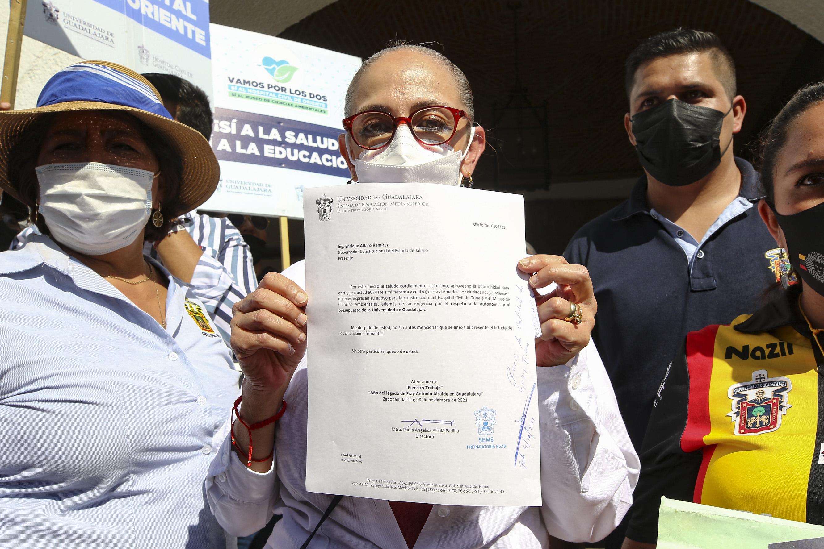 Alcalá Padilla entregó esta mañana 6 mil 74 cartas firmadas por ciudadanos con las que se exige que se devuelvan los 140 millones de pesos que el Gobierno de Jalisco recortó a la UdeG y que estaban destinados a la construcción del MCA.